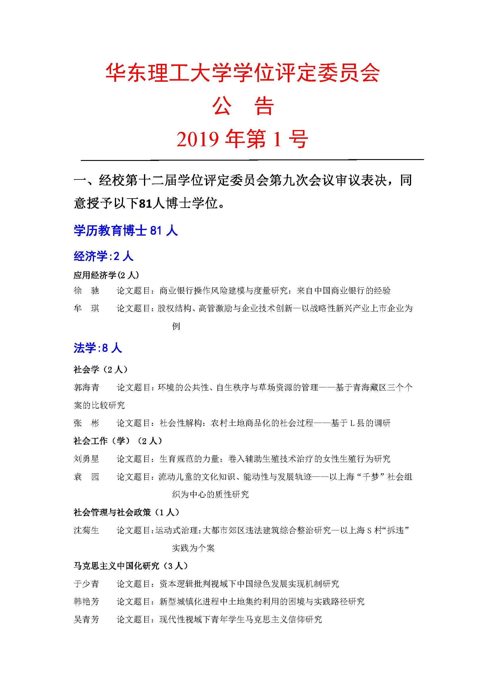 betway官方登陆第十二届学位评定委员会第九次学位授予公告(2019年1号公告)