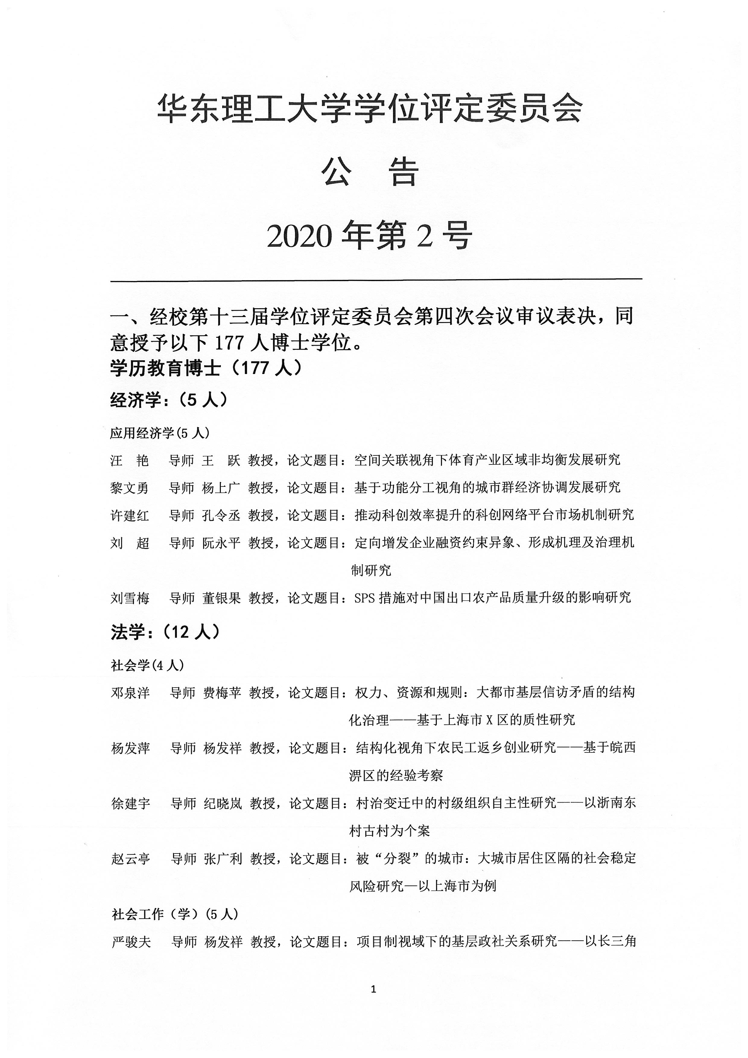 betway官方登陆第十三届学位评定委员会第四次学位授予公告(2020年2号公告)