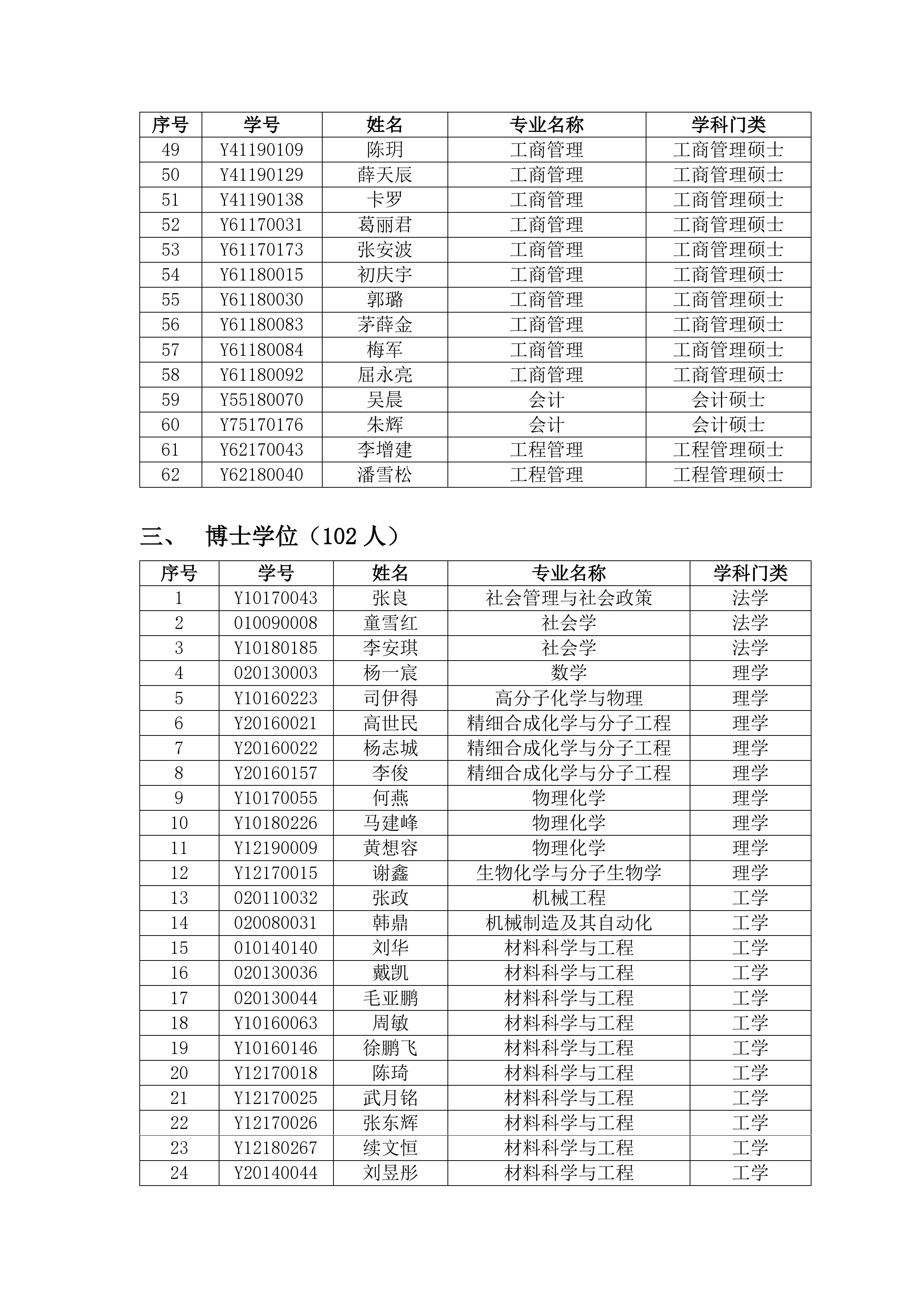 学位评定委员会公告