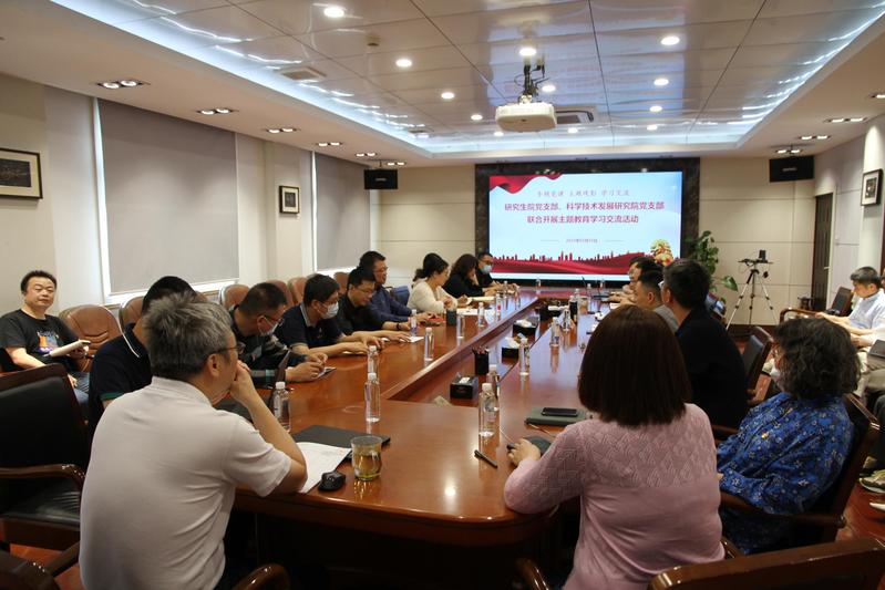 为牢牢把握“学思想、强党性、重实践、建新功”的总要求,进一步推动主题教育走深走实,认真学习贯彻习近平总书记重要讲话精神,5月16日上午,研究生院党支部与科学技术发展研究院党支部联合开展“学深悟透 知行互促”主题党日活动。活动分为听专题党课、观主题电影、促学习交流三个环节,研究生院党支部、科学技术发展研究院党支部共计20余人参加。活动由研究生院党支部副书记孙洪锋主持,研究生院和科研院教师党员参加。