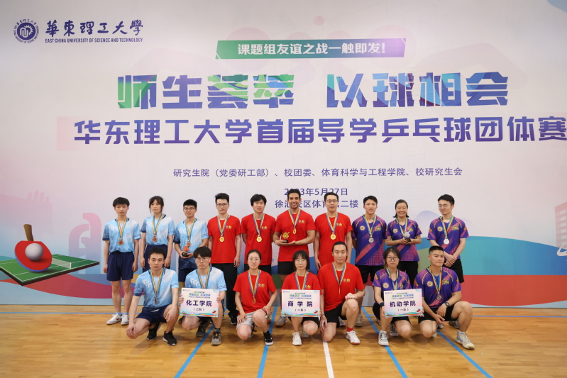 经过一天的激烈比赛,最终商学院学院一队、机械与动力工程学院一队、化工学院二队分别获得了冠、亚、季军。来自研究生院(党委研工部)和体育学院的领导分别为他们颁发了奖杯和奖牌。