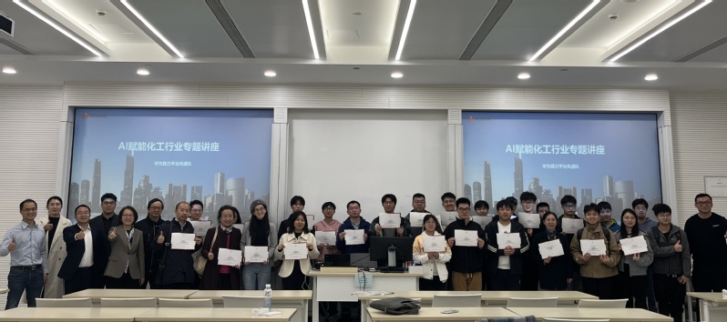 本次讲座邀请了多位华为公司的AI赋能行业专家和技术专家,他们就化工+AI趋势洞察及探索实践、人工智能基础及开发平台、AI开发案例实操等主题进行了深入探讨,并针对师生提出的相关问题进行答疑。培训结束后,华为公司为完成讲座培训的师生颁发了培训证书。