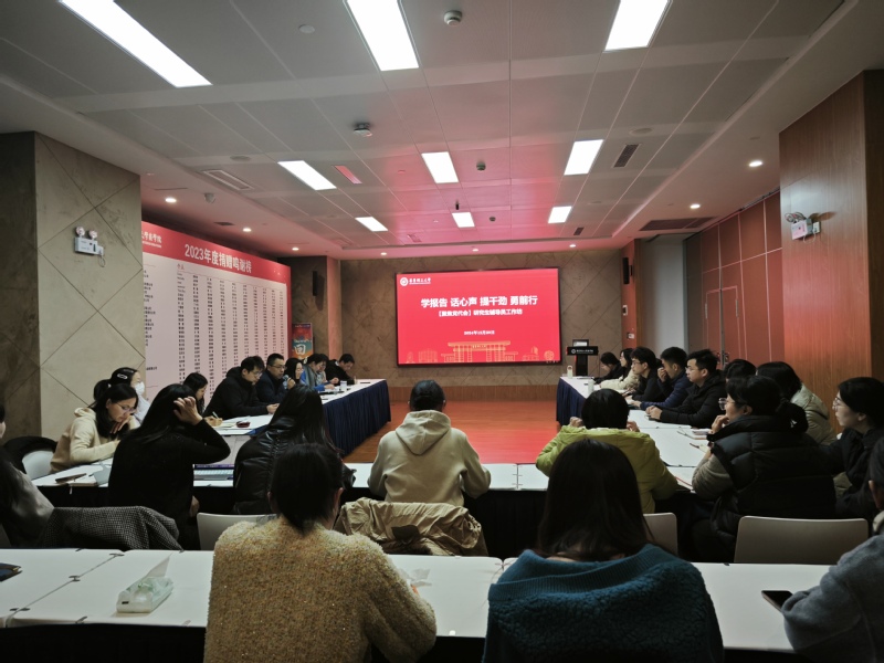 随后,与会辅导员代表进行了交流分享。党代表、化学与分子工程学院研究生辅导员逄索从结合教育强国战略部署,细化立德树人任务;围绕学校发展中心工作,布局学生工作重点;立足高质量工作新要求,提升职业专业技能三个方面交流了对党代会报告的学习体会。党代表、生物工程学院研究生辅导员孙希彤表示,作为负责就业工作的思政老师,我深知学校“聚焦国之所需,提升服务国家发展能力”这一重点举措对于就业老师的要求和期许,我们在就业工作中将瞄准国家战略,聚焦生物与医药先导产业需求,在人才输送过程中积极提高人才培养与社会经济技术发展需求的适配度,切实为国家科学技术创新的打牢人才主阵地。党代表、药学院辅导员苏琳表示,在深入学习党代会报告后,我更加坚定了作为研究生辅导员的使命感和责任感。我将继续努力提升自己的专业素养和工作能力,以更加饱满的热情投入到工作中,为推动学校事业的高质量发展贡献自己的一份力量。党代表、信息科学与工程学院院长助理、研究生兼职辅导员丁炜超结合自身实际和学习体会,认为持续深化研究生教育改革举措明确了人才培养过程中企业联合和实践成果转化的重要性;调整优化学科布局举措将计算机科学列入了基础学科,强调了AI赋能和战略新型交叉的培育布局,为信息学院后续发展提供了广阔的发展空间。研工部思政办教师庞祎晔谈到,在今后的工作中,应努力将党代会精神向青年学生传达好、宣传好、贯彻好、落实好,锚定新发展目标,做实日常工作,做强重点工作,做活特色工作,努力为学生成长和发展提供有力的支持和引导,为建设特色鲜明的高水平大学贡献力量。