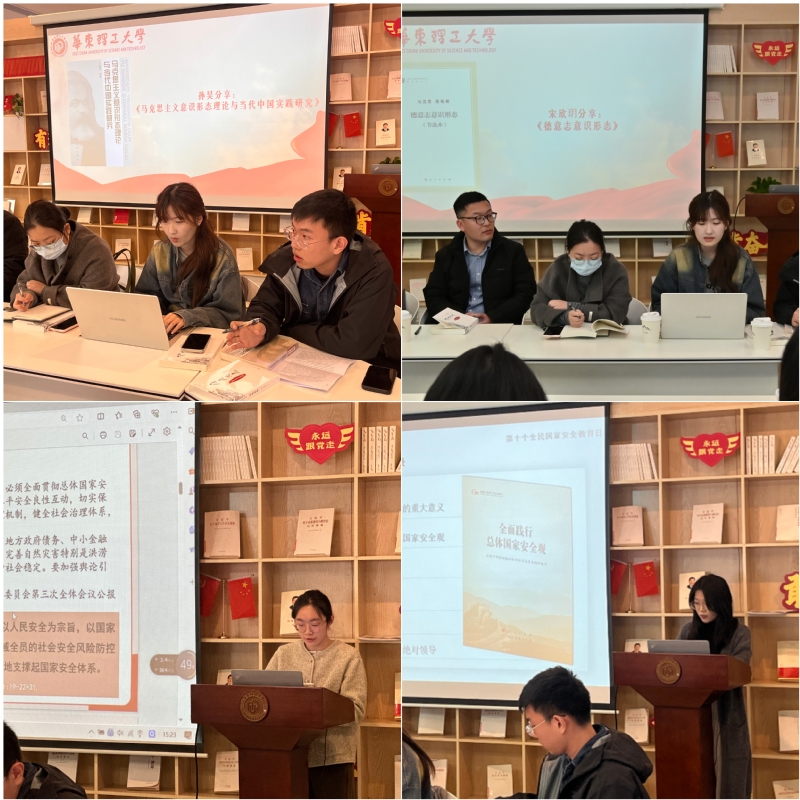 本次活动以“4·15”全民国家安全教育日为主题,来自马克思主义学院、社会与公共管理学院的4位硕博士生进行读书分享,特邀复旦大学马克思主义学院副教授包炜杰,我校习研会理论指导教师、马克思主义学院副教授胡博成进行点评。