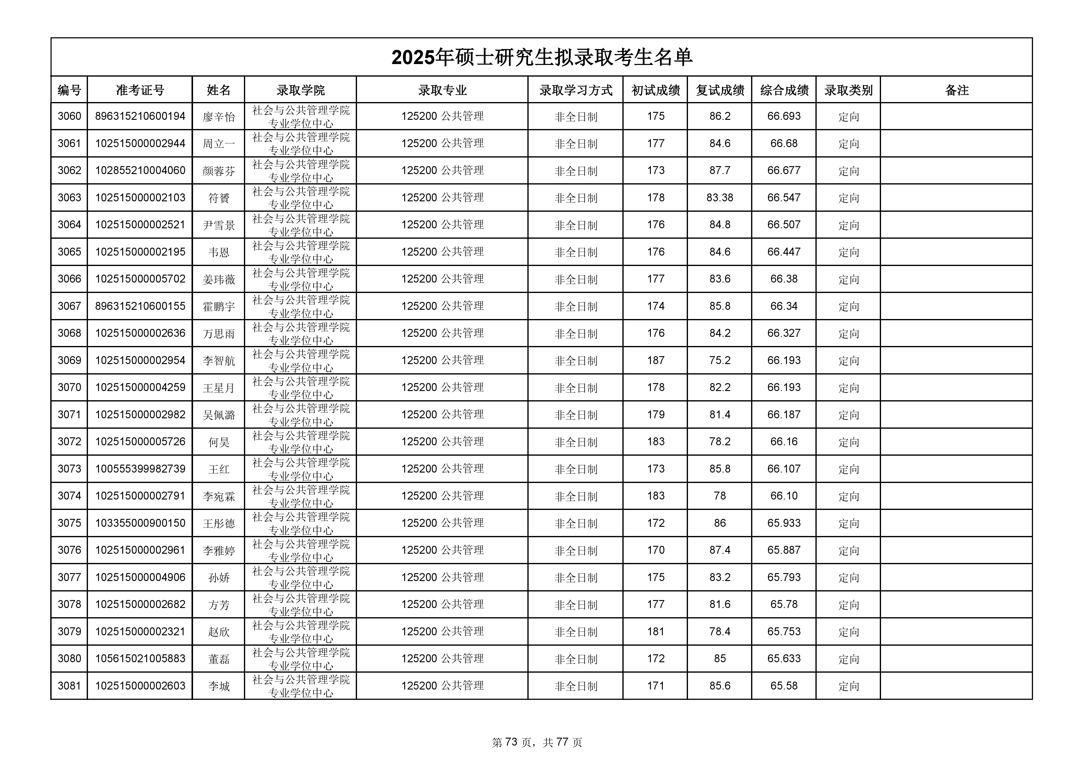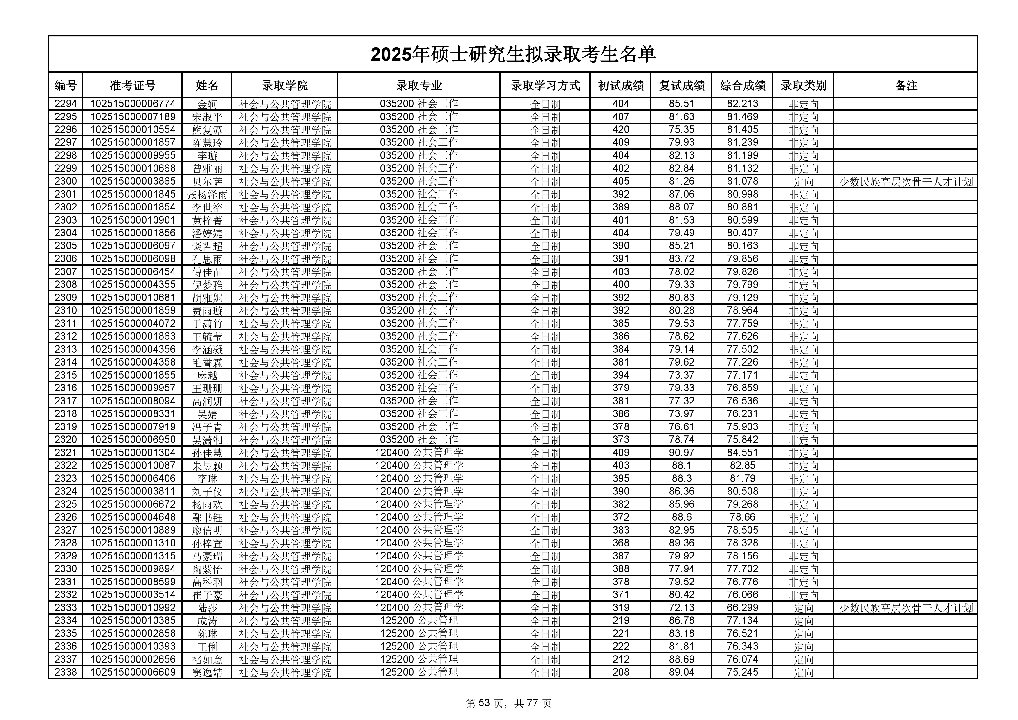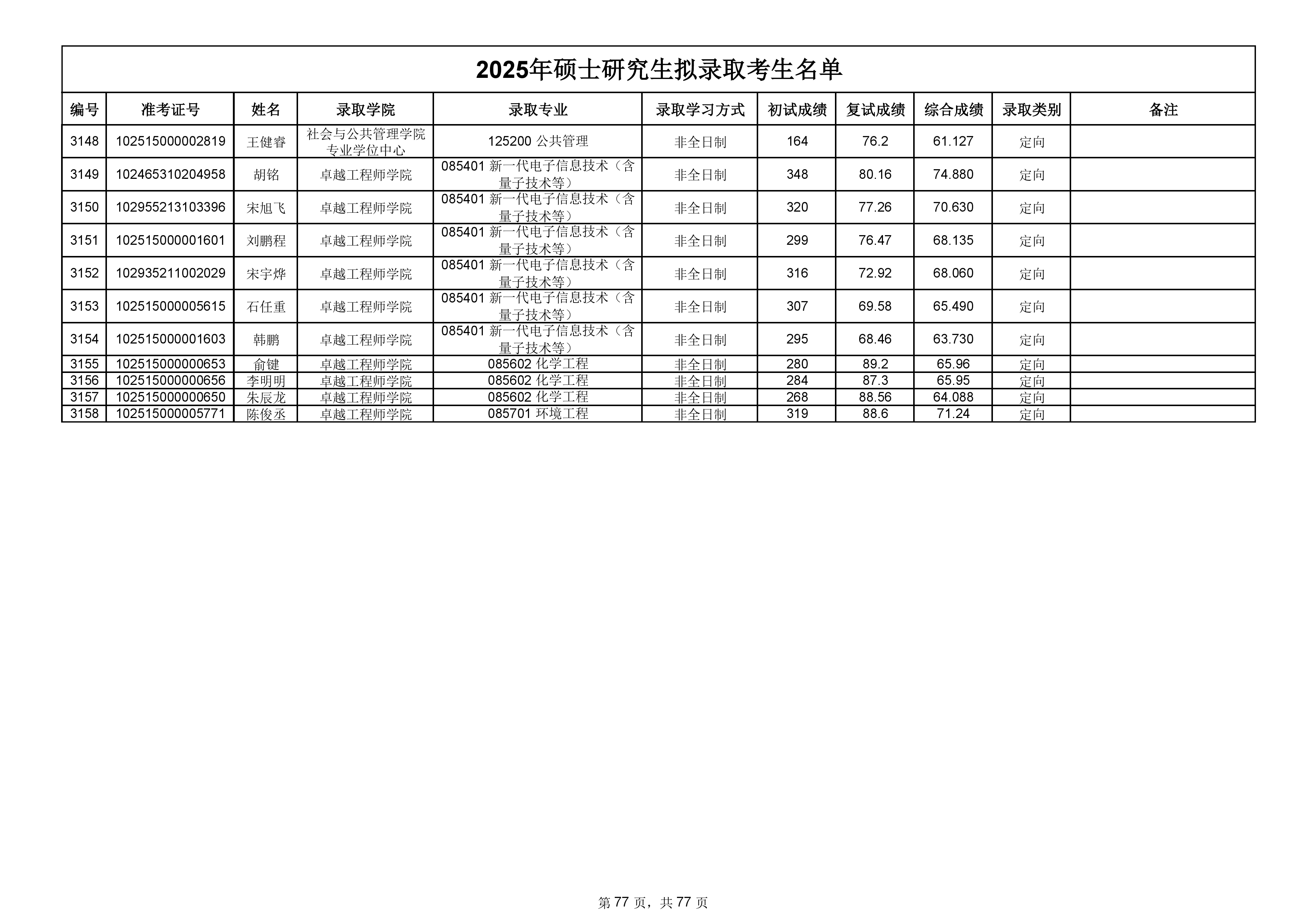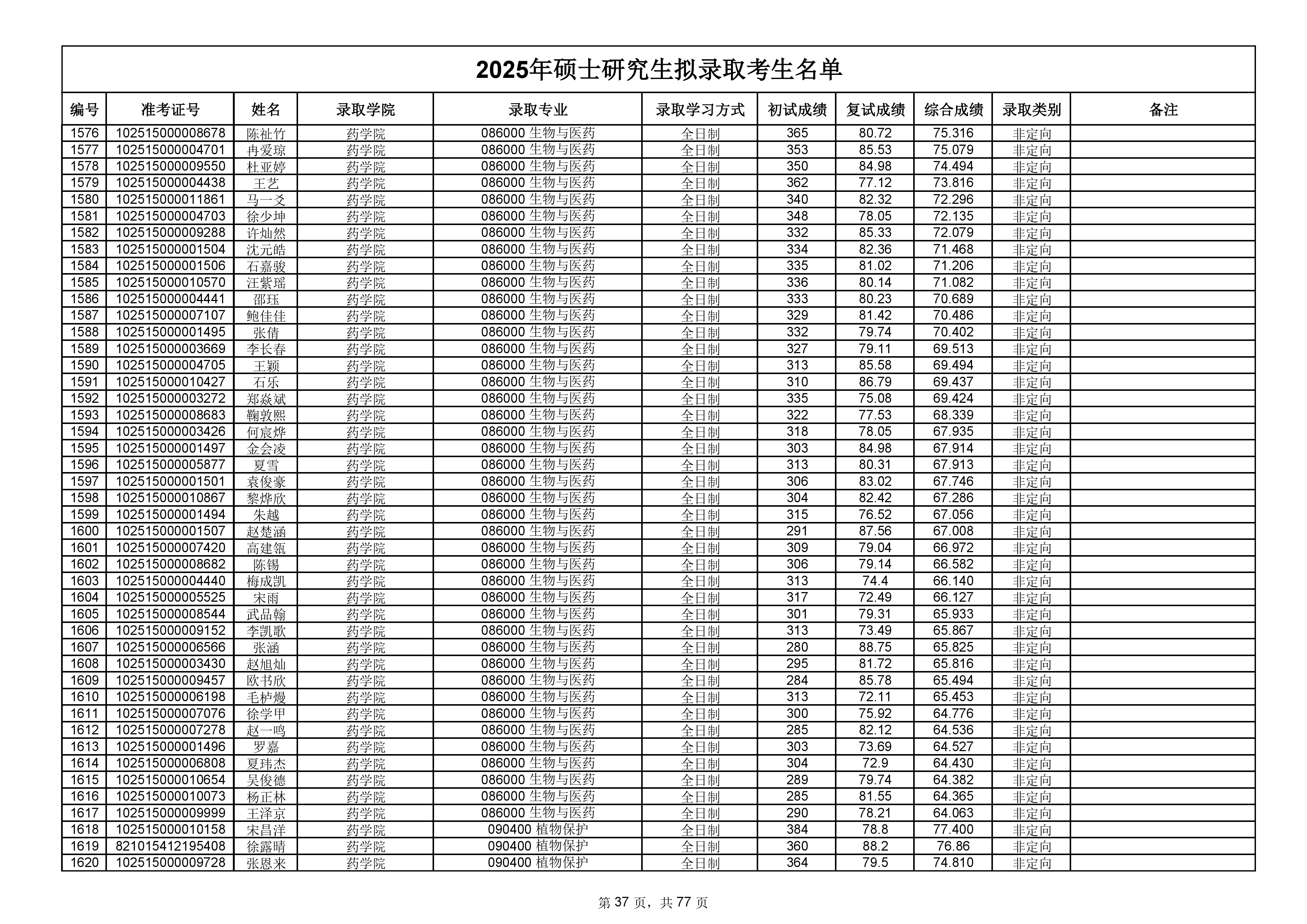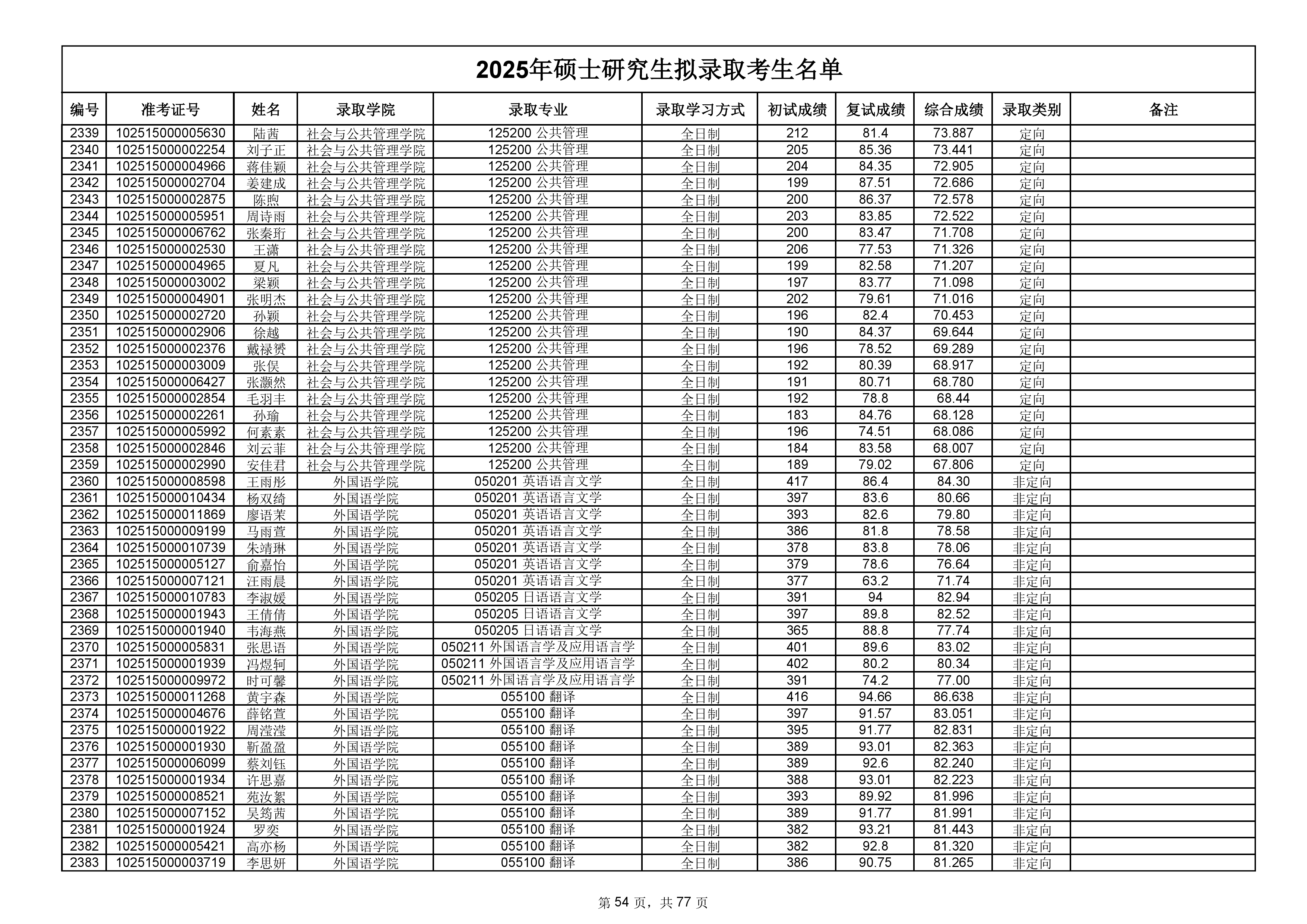 备注:此次公示名单为我校统考一志愿以及调剂拟录取名单。