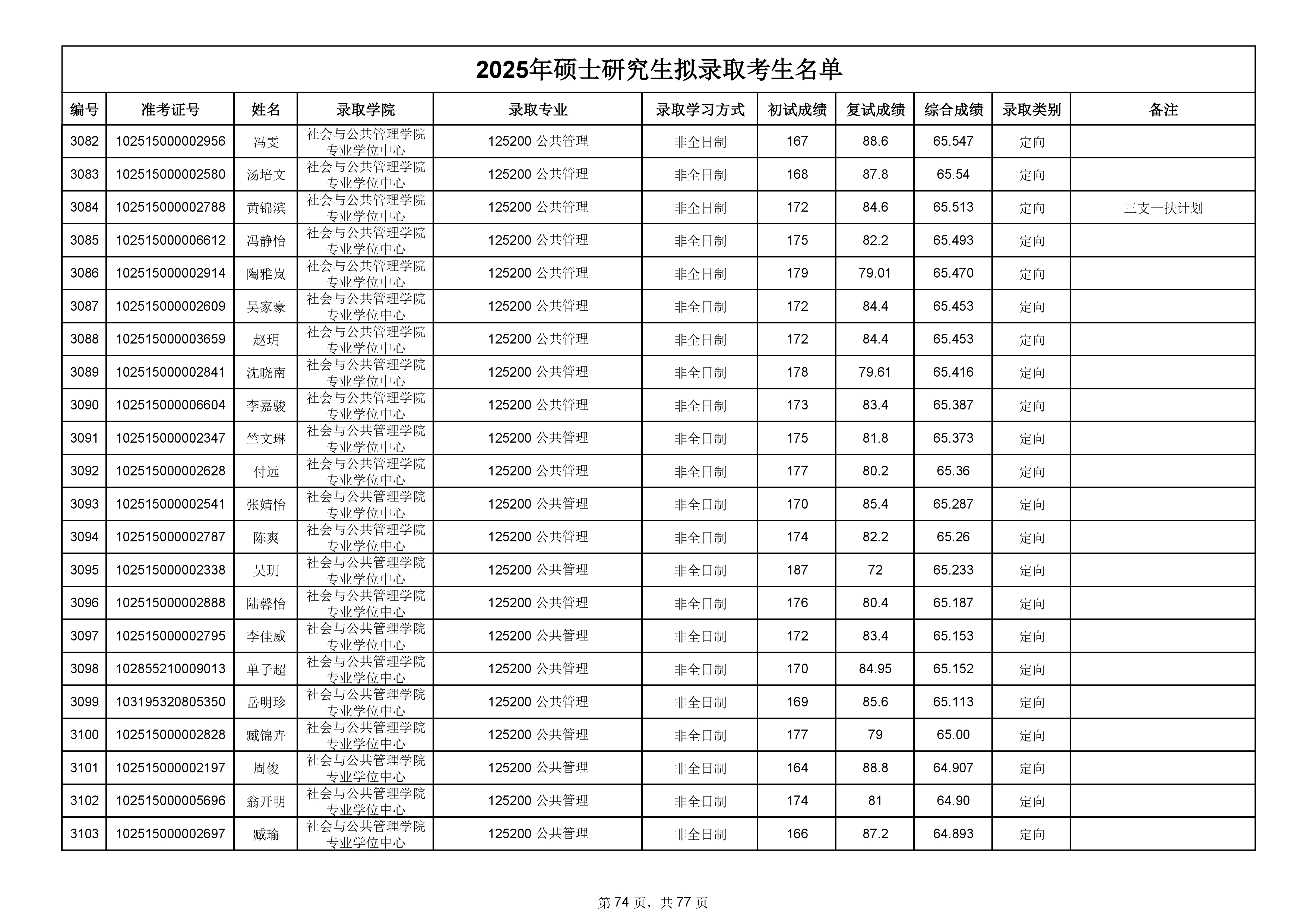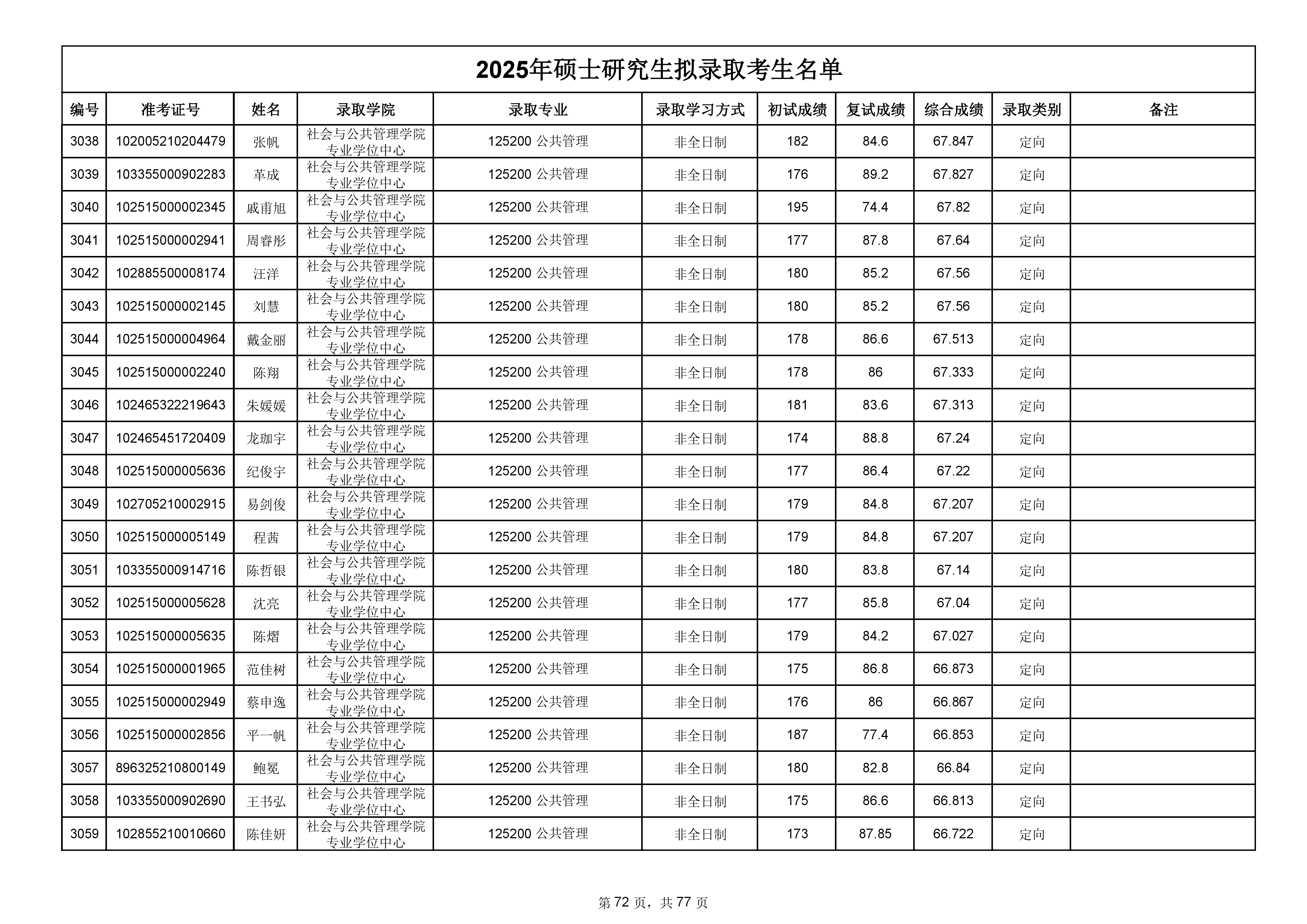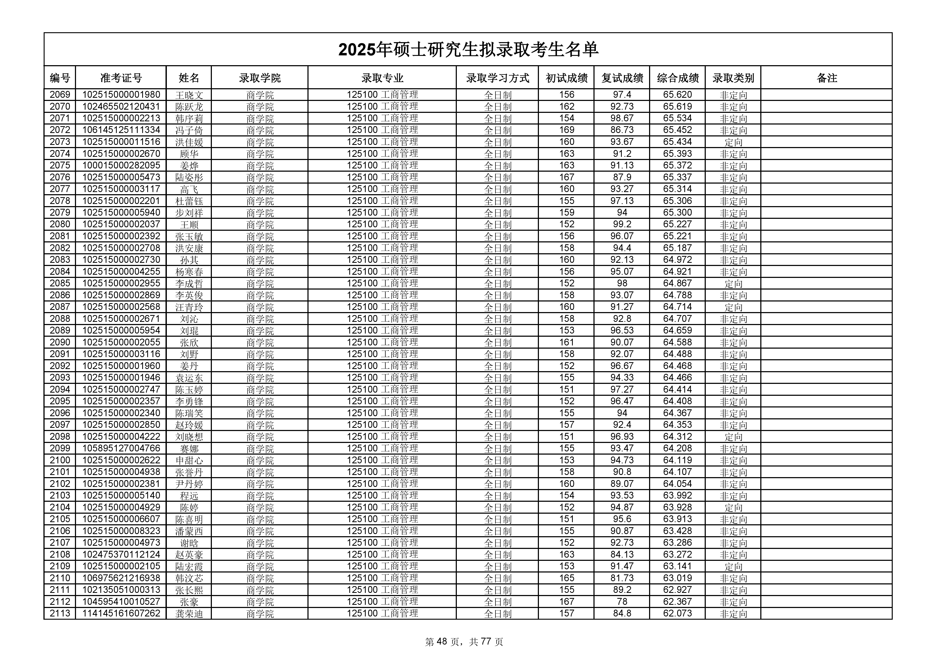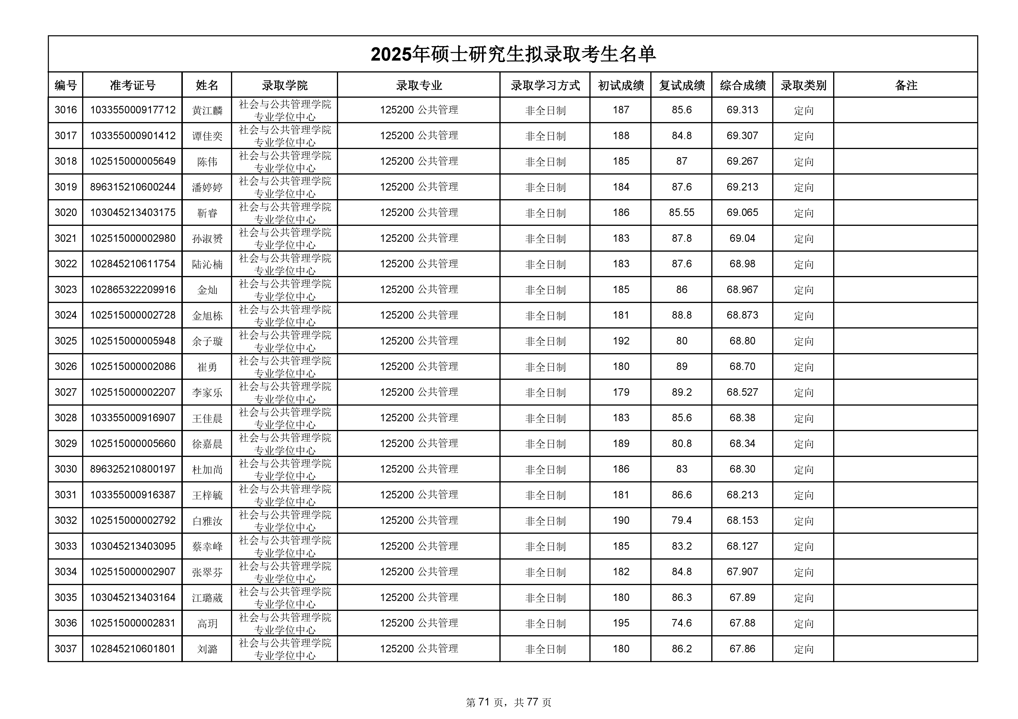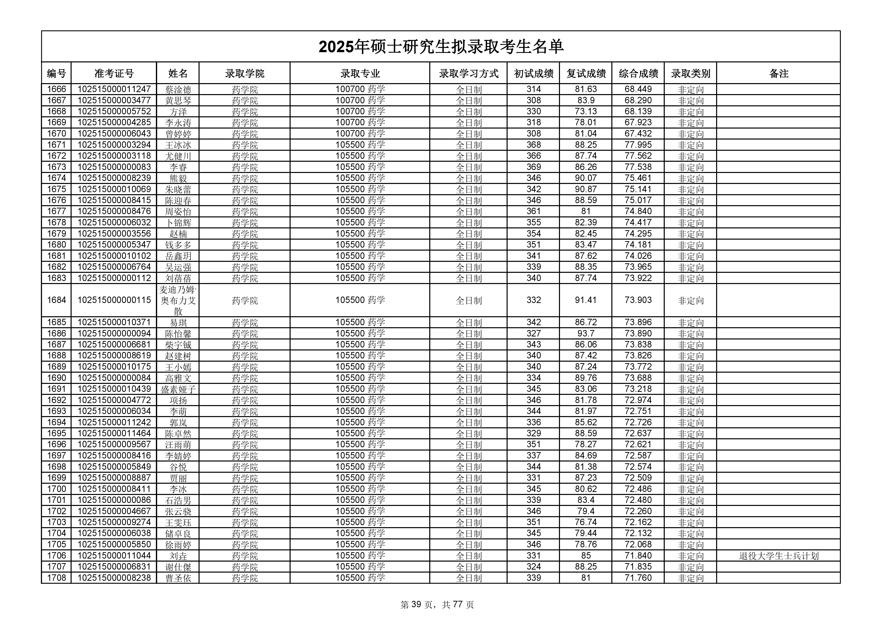备注:此次公示名单为我校统考一志愿以及调剂拟录取名单。