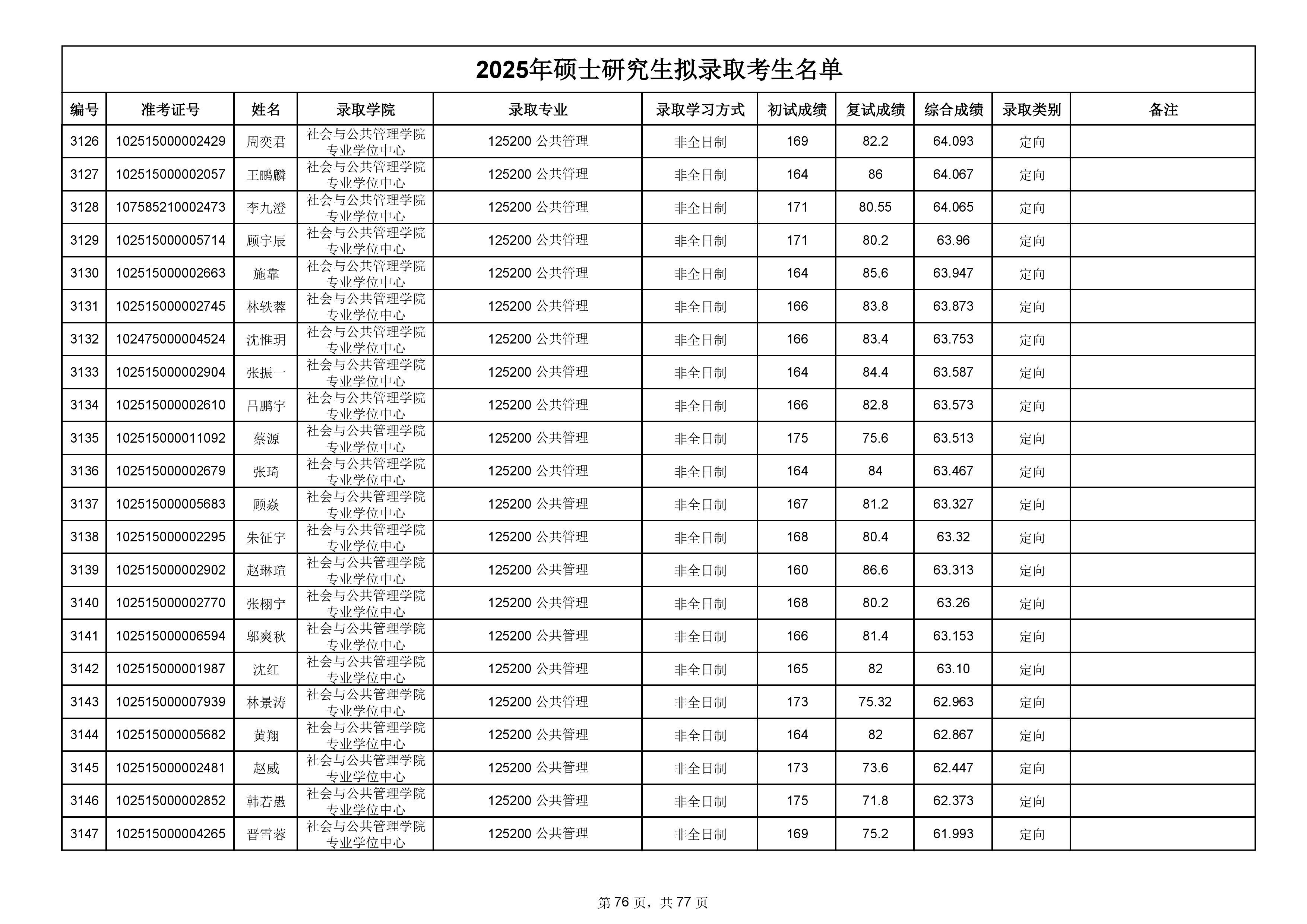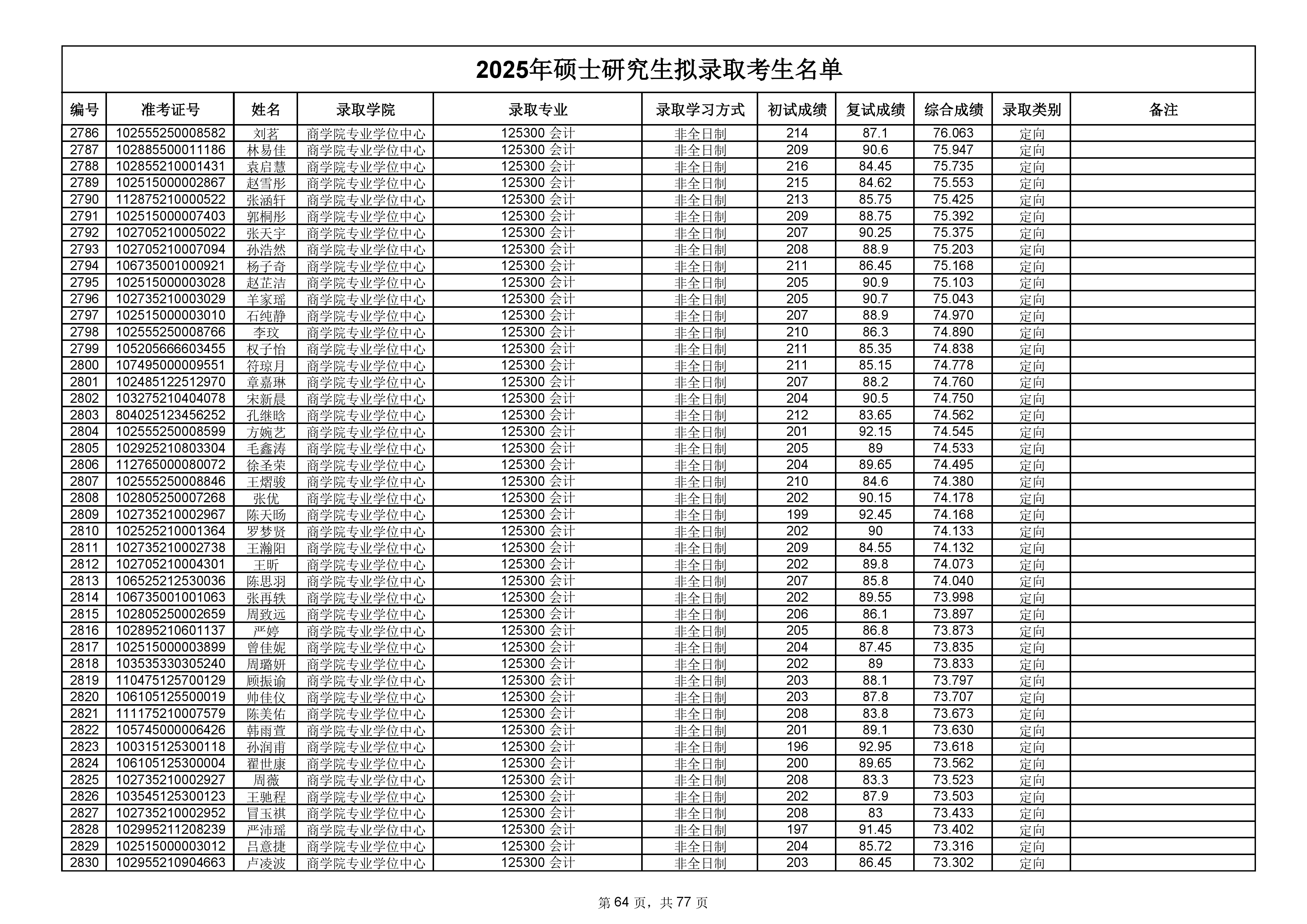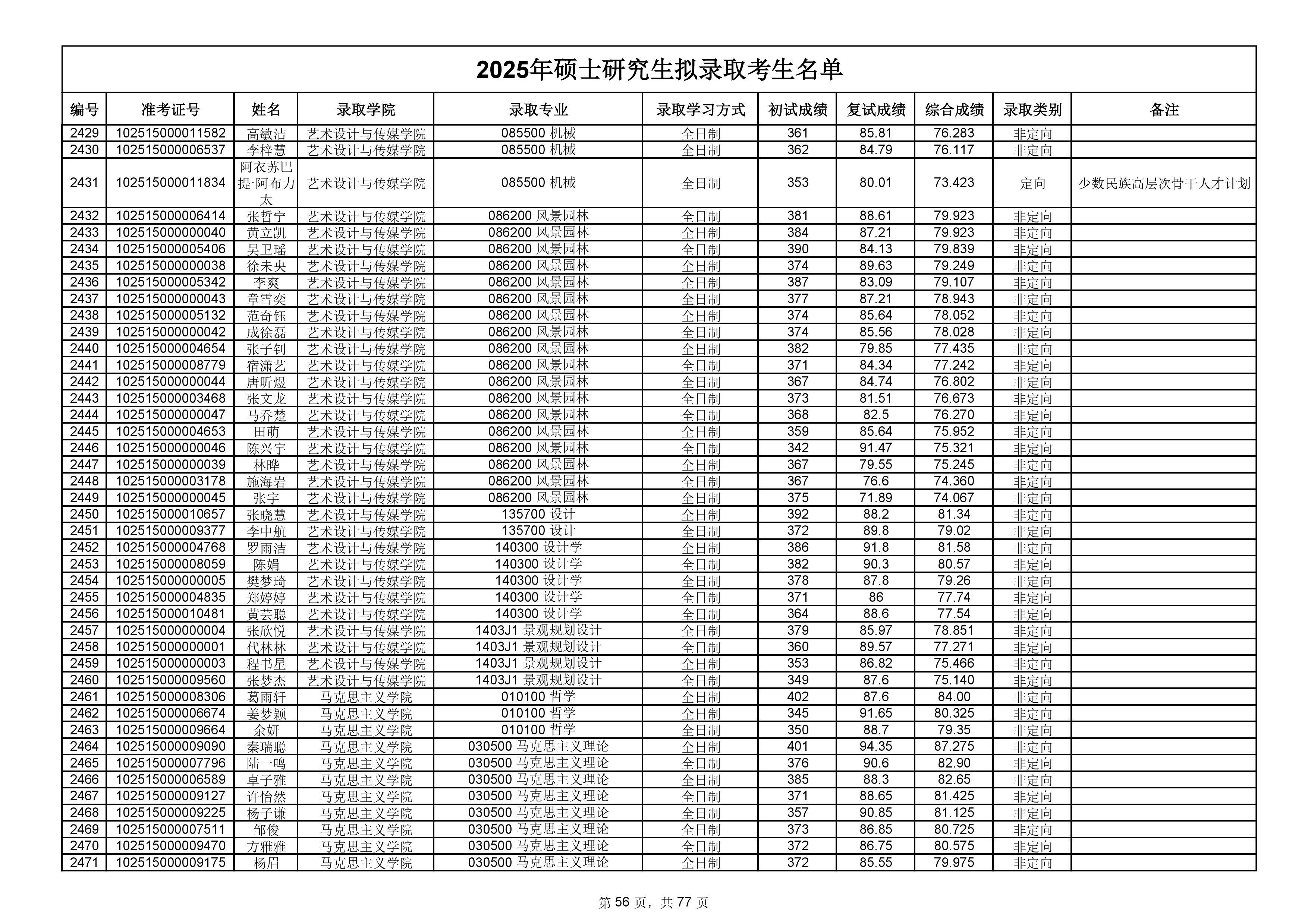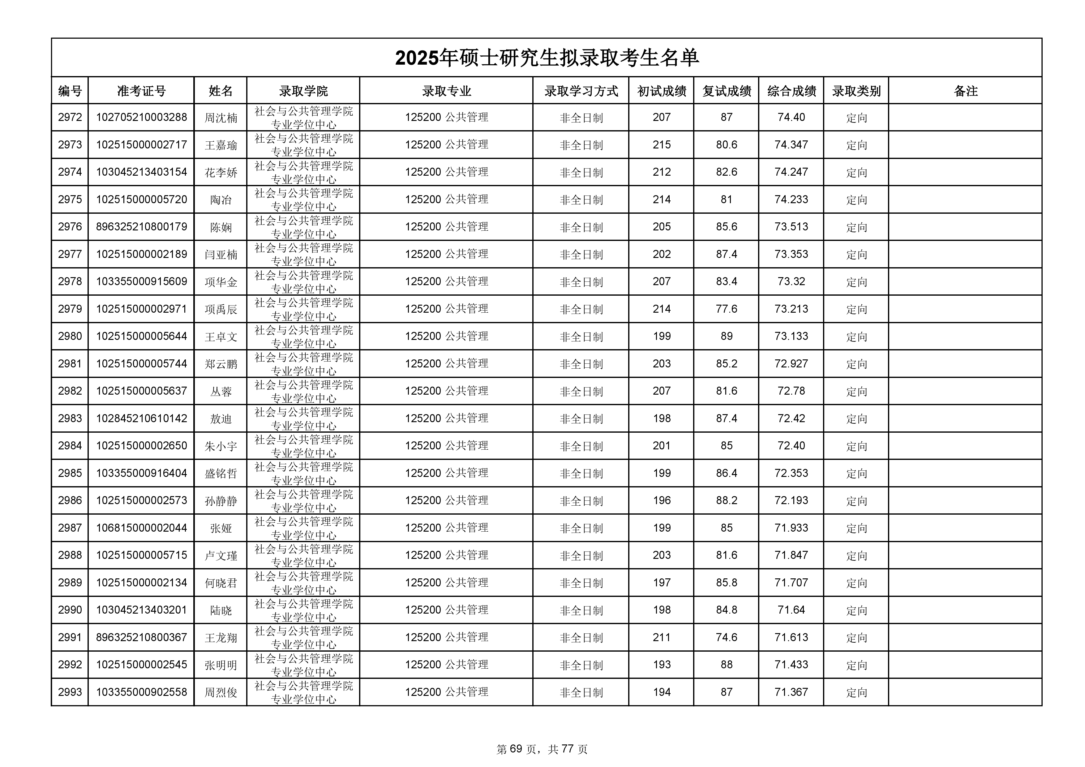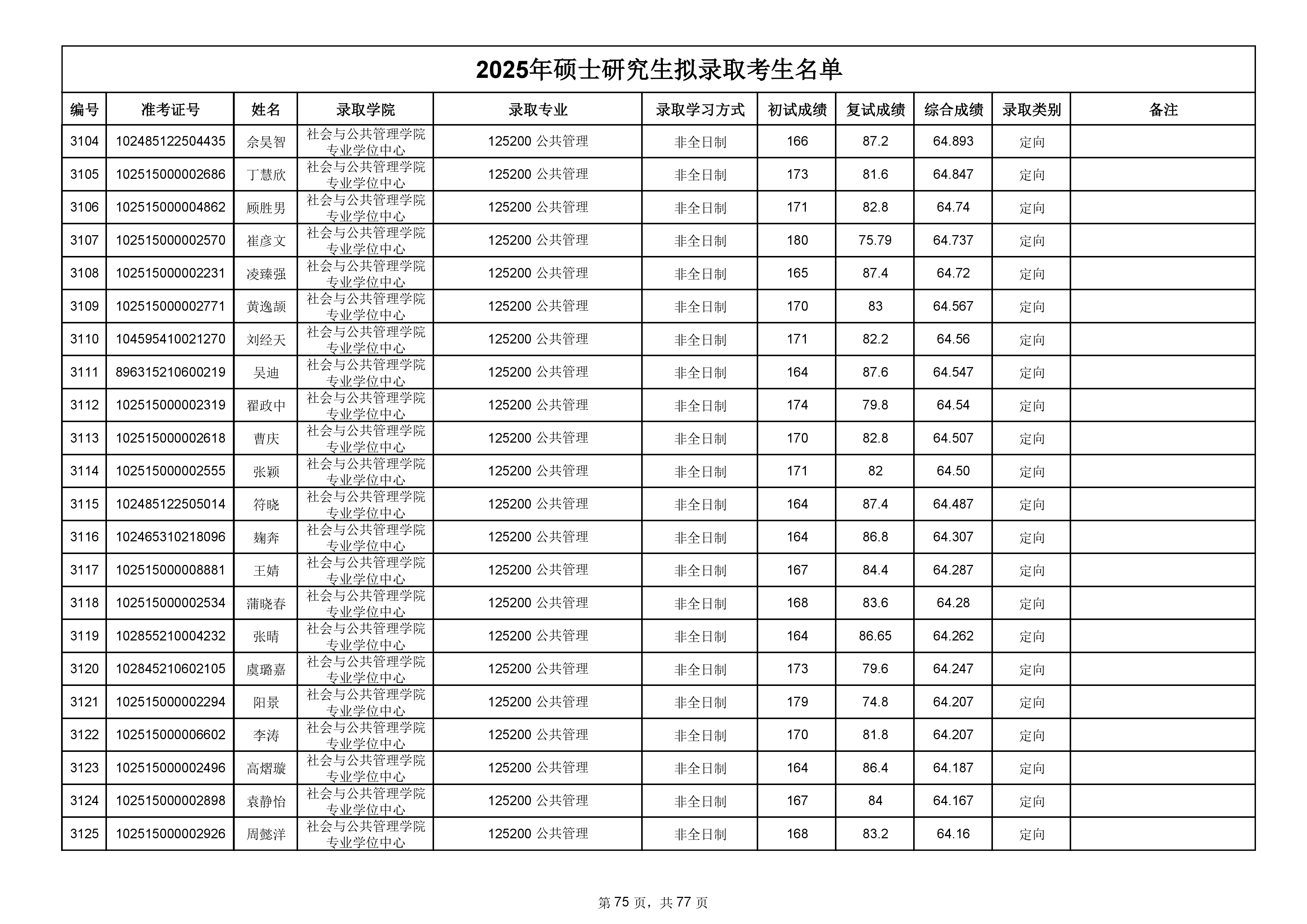备注:此次公示名单为我校统考一志愿以及调剂拟录取名单。