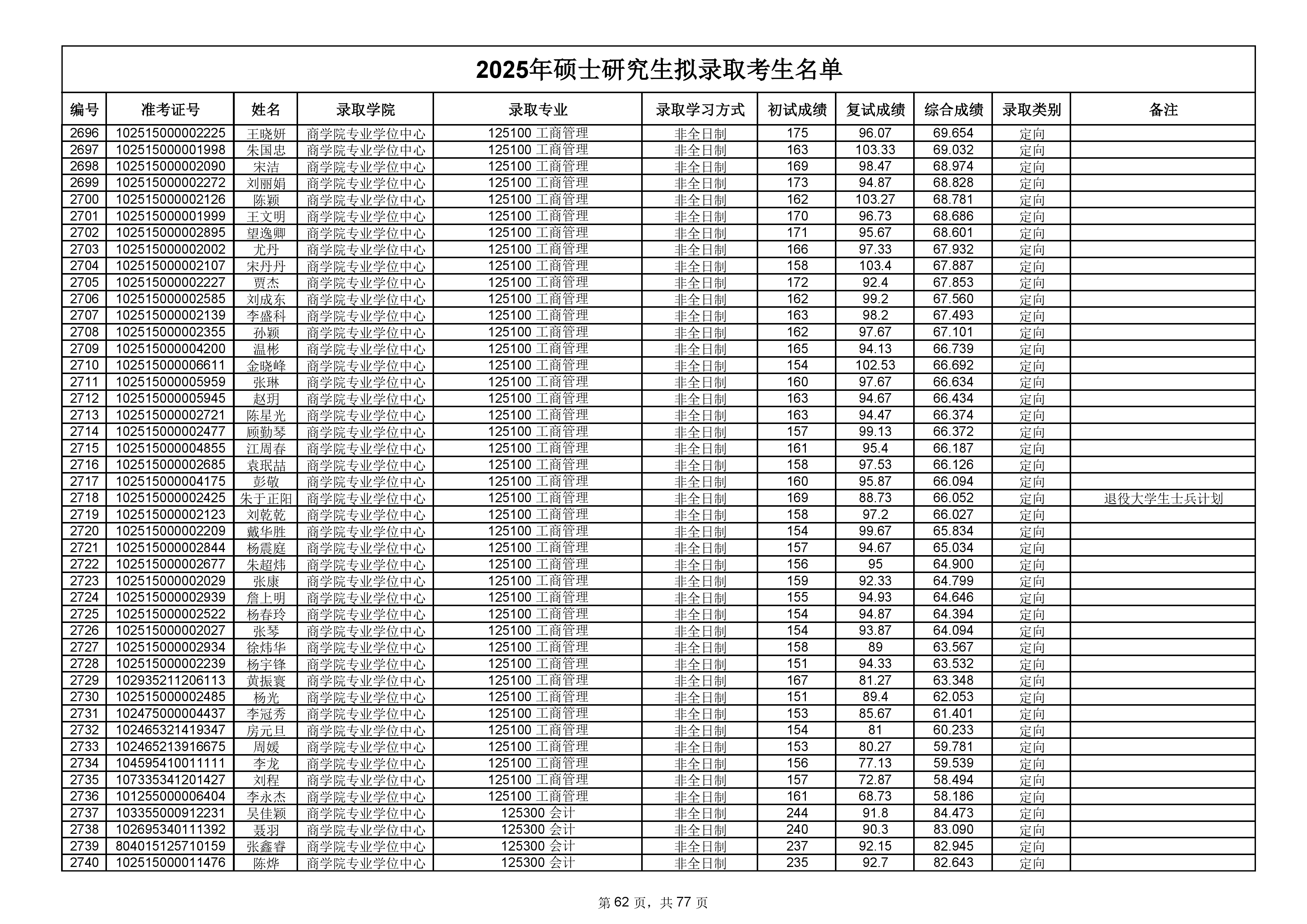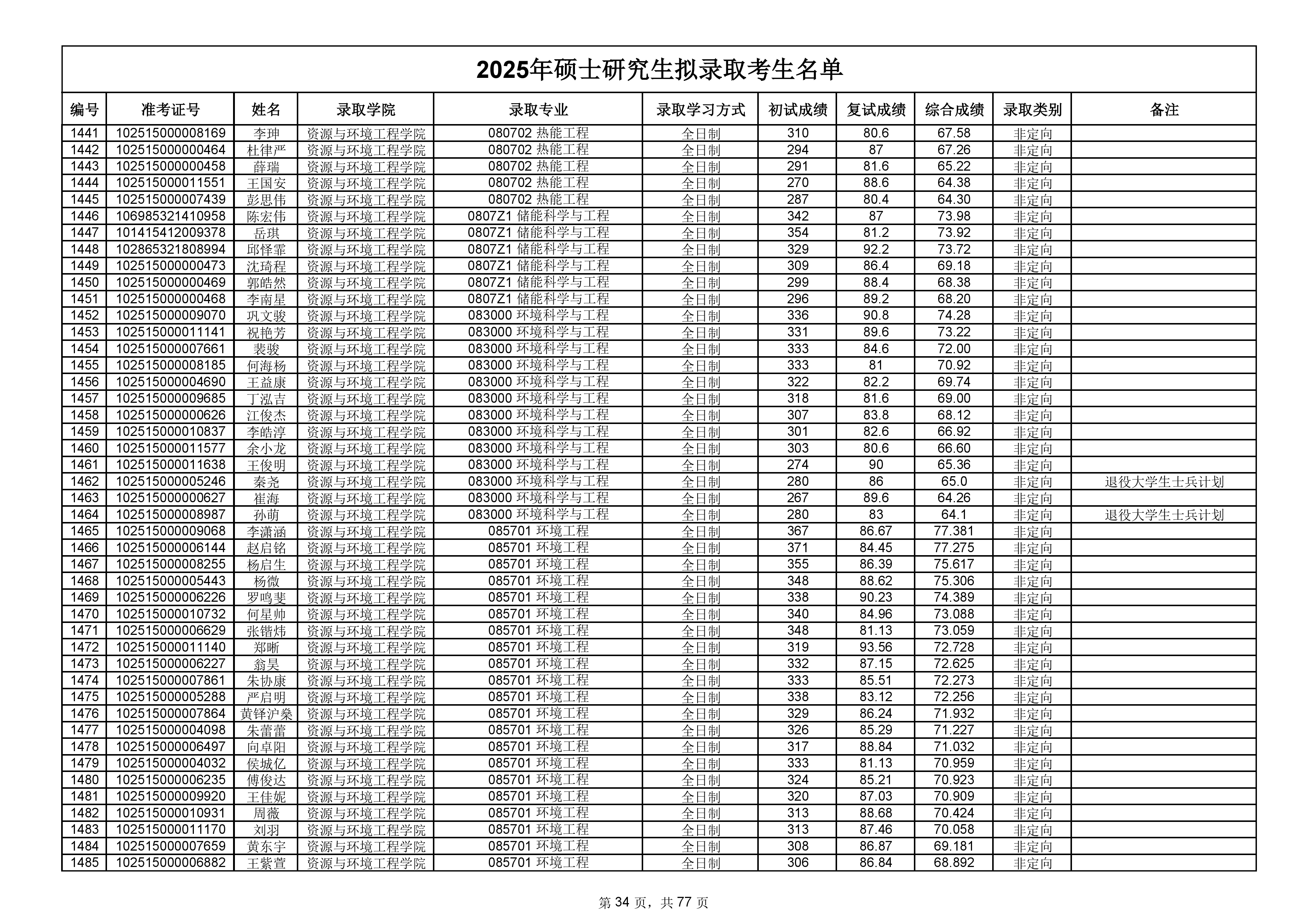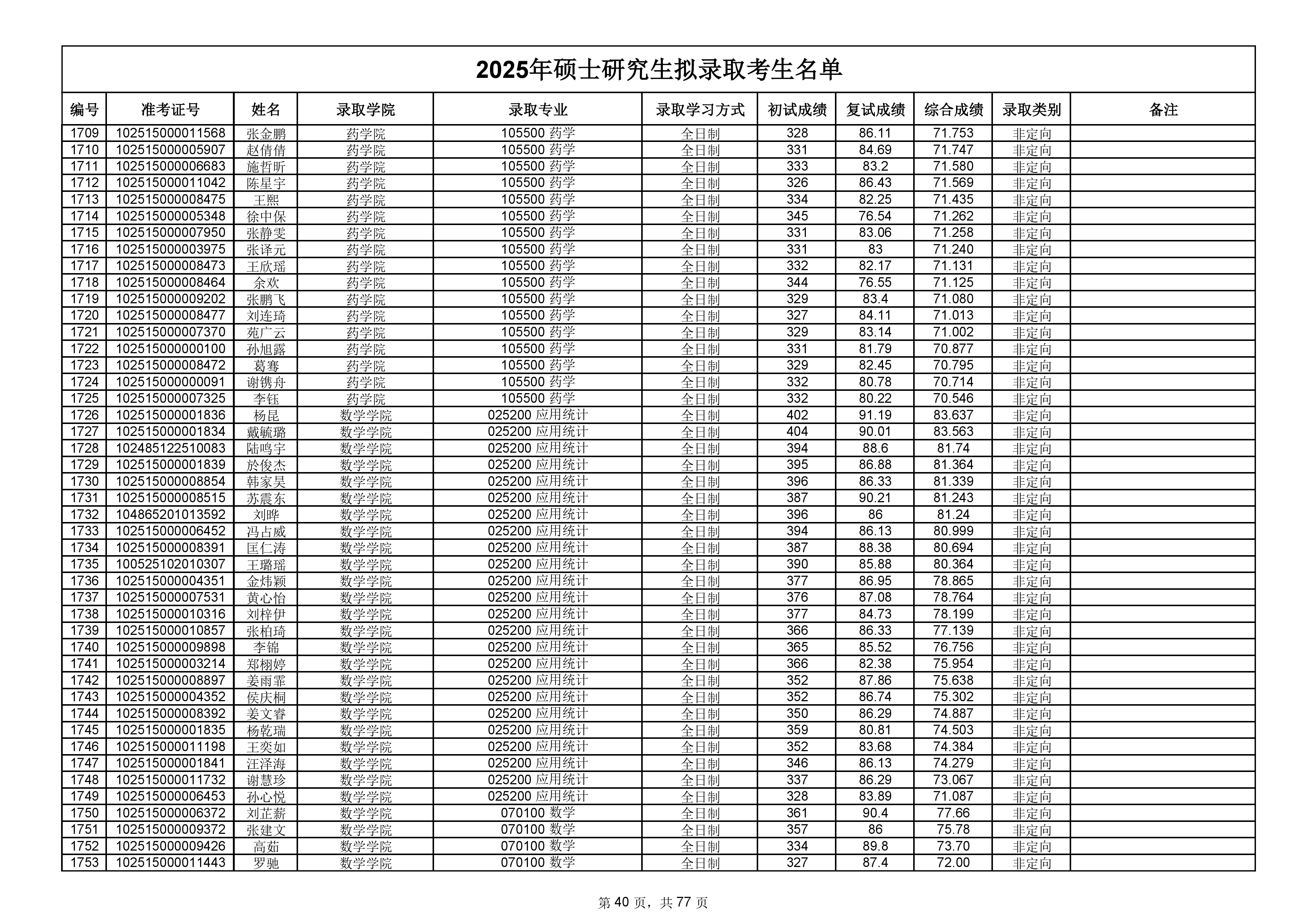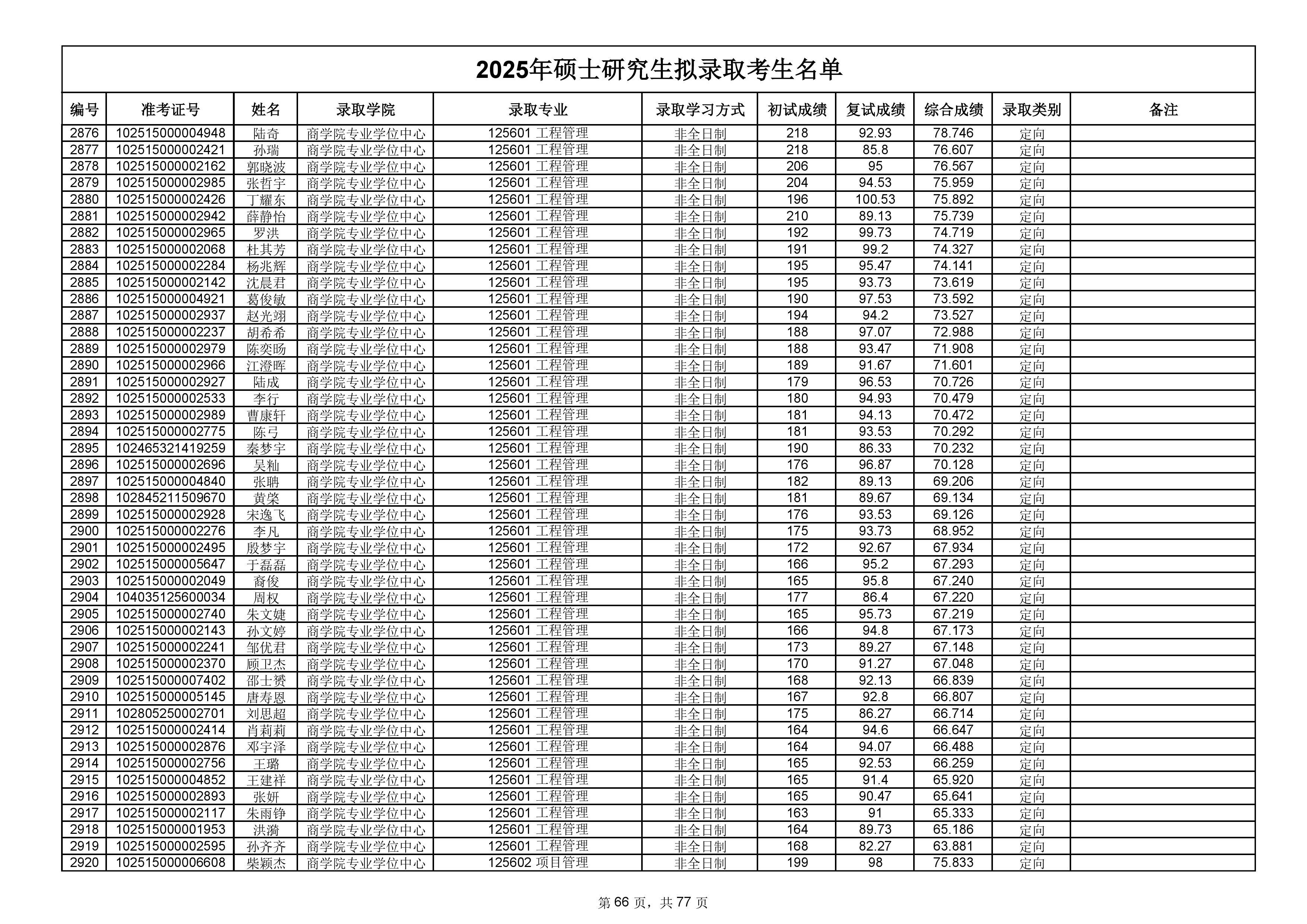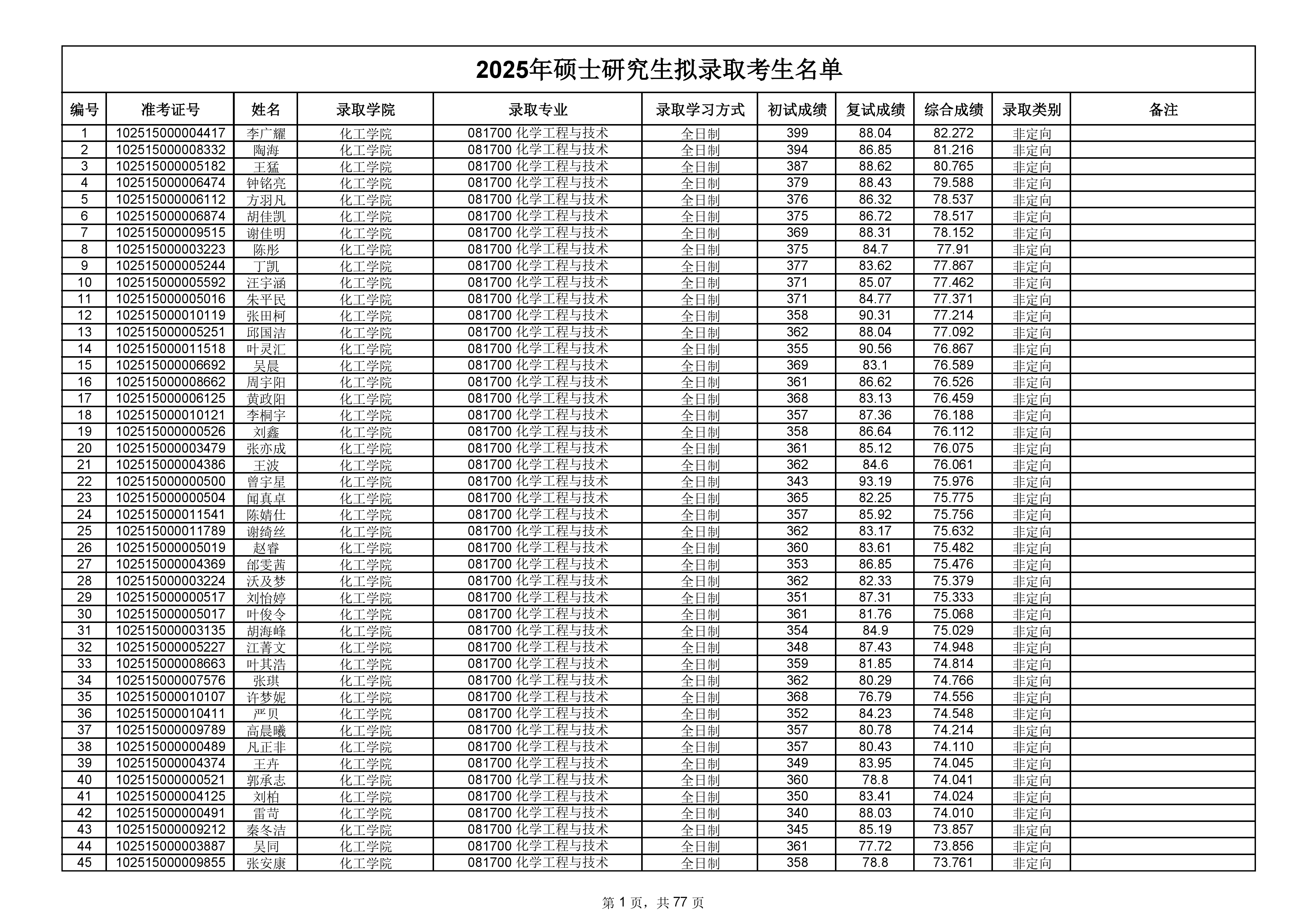 备注:此次公示名单为我校统考一志愿以及调剂拟录取名单。
