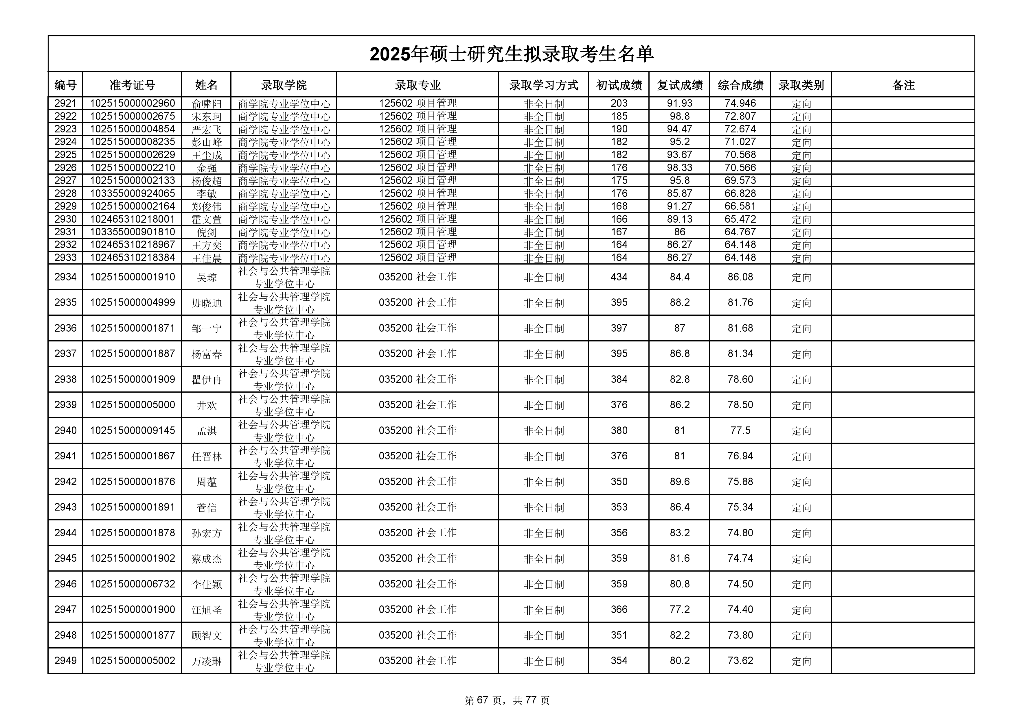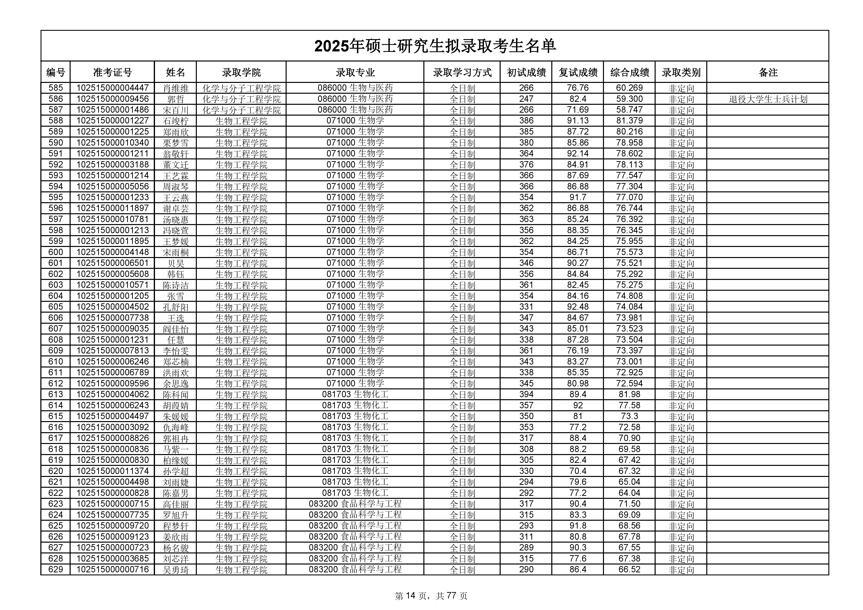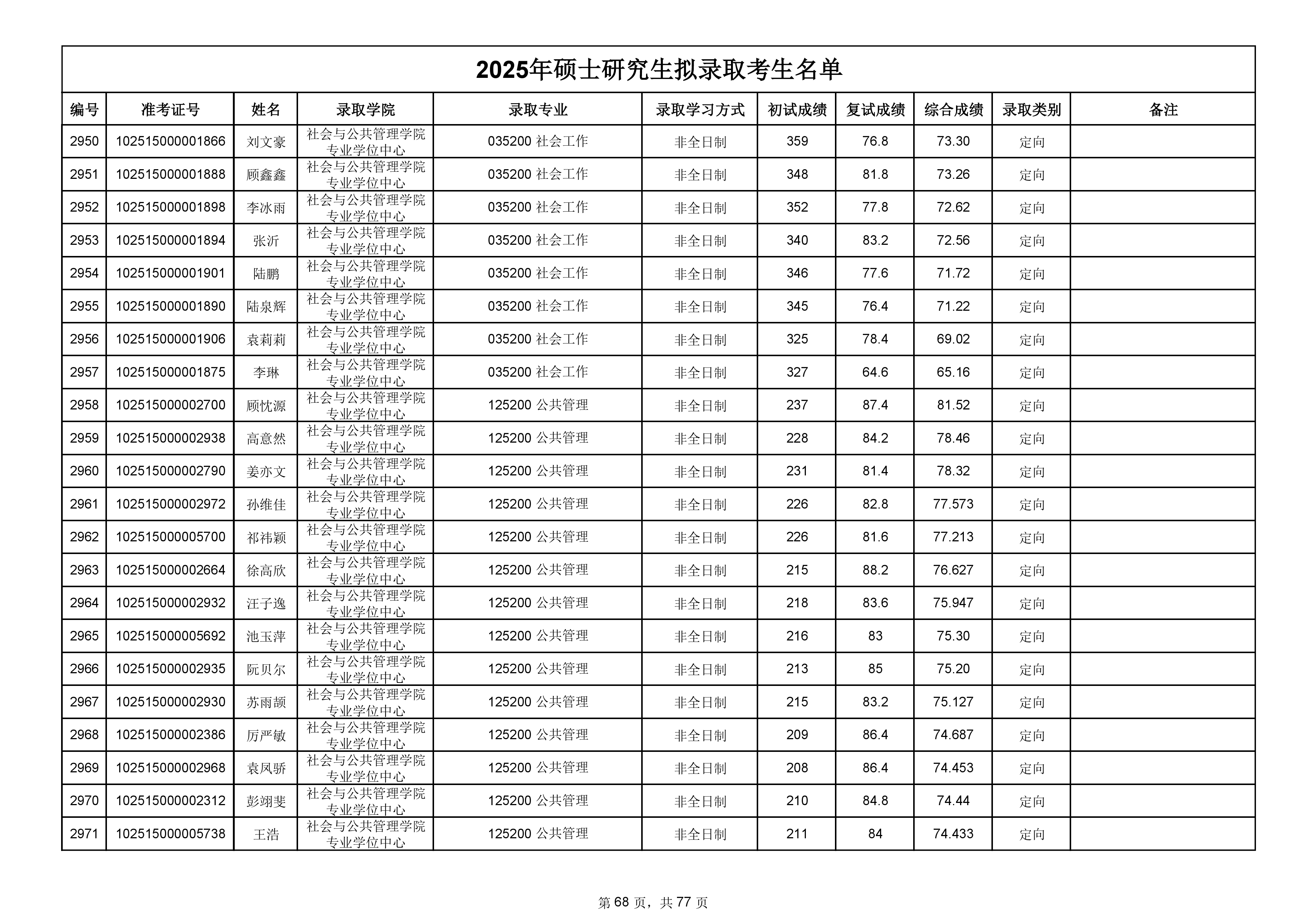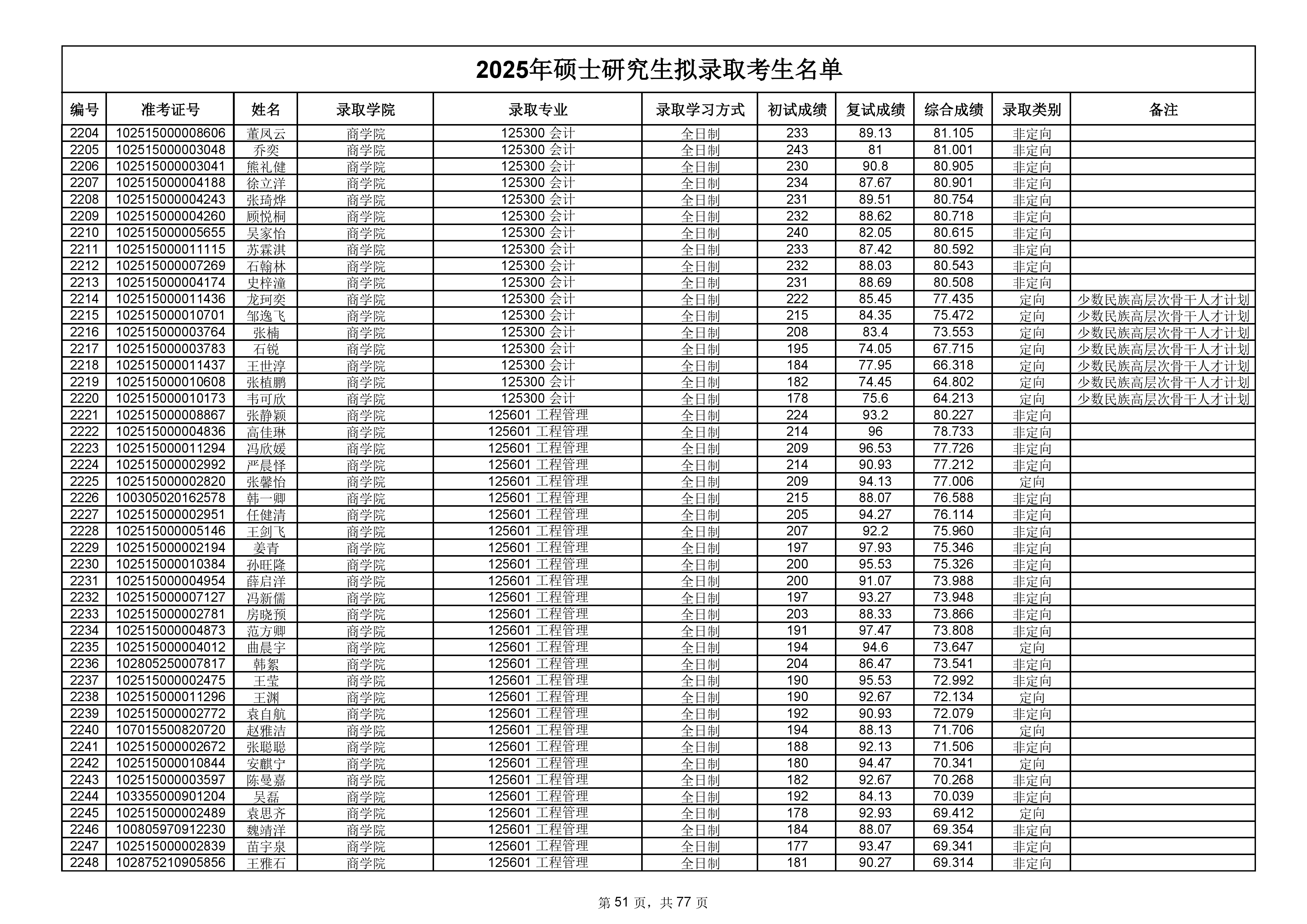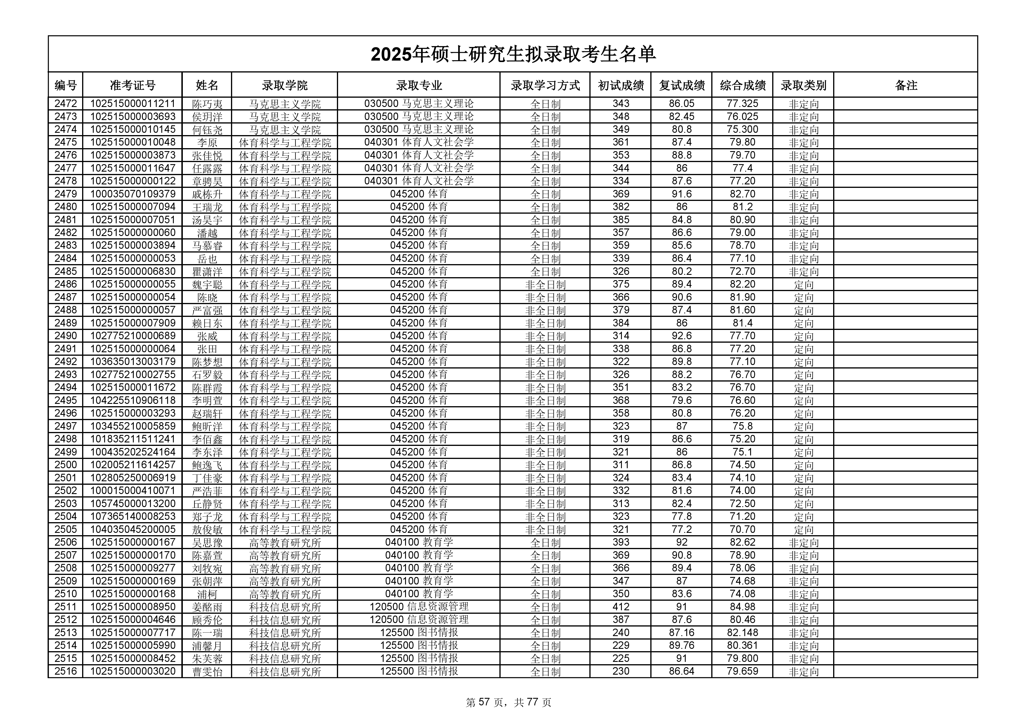 备注:此次公示名单为我校统考一志愿以及调剂拟录取名单。