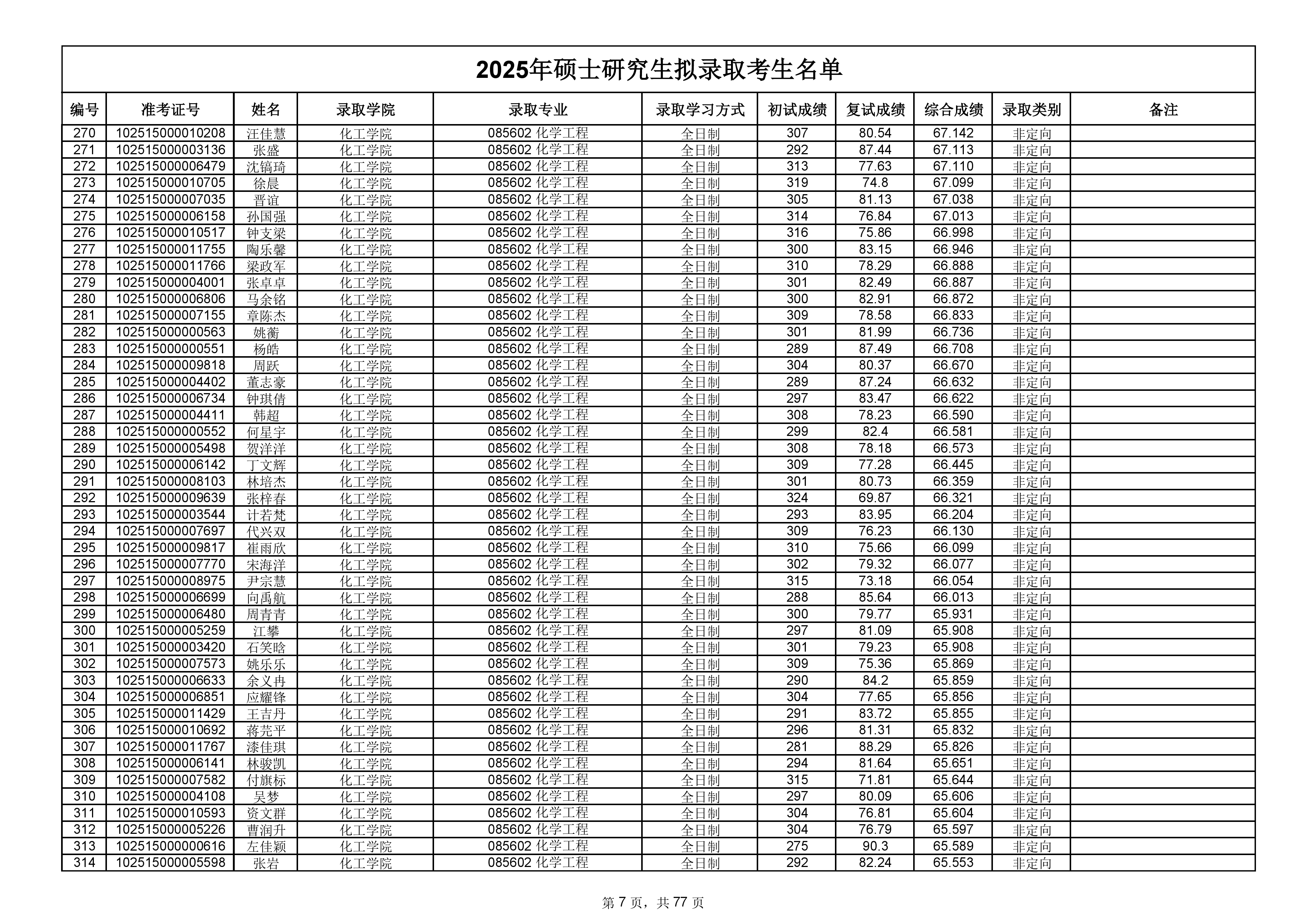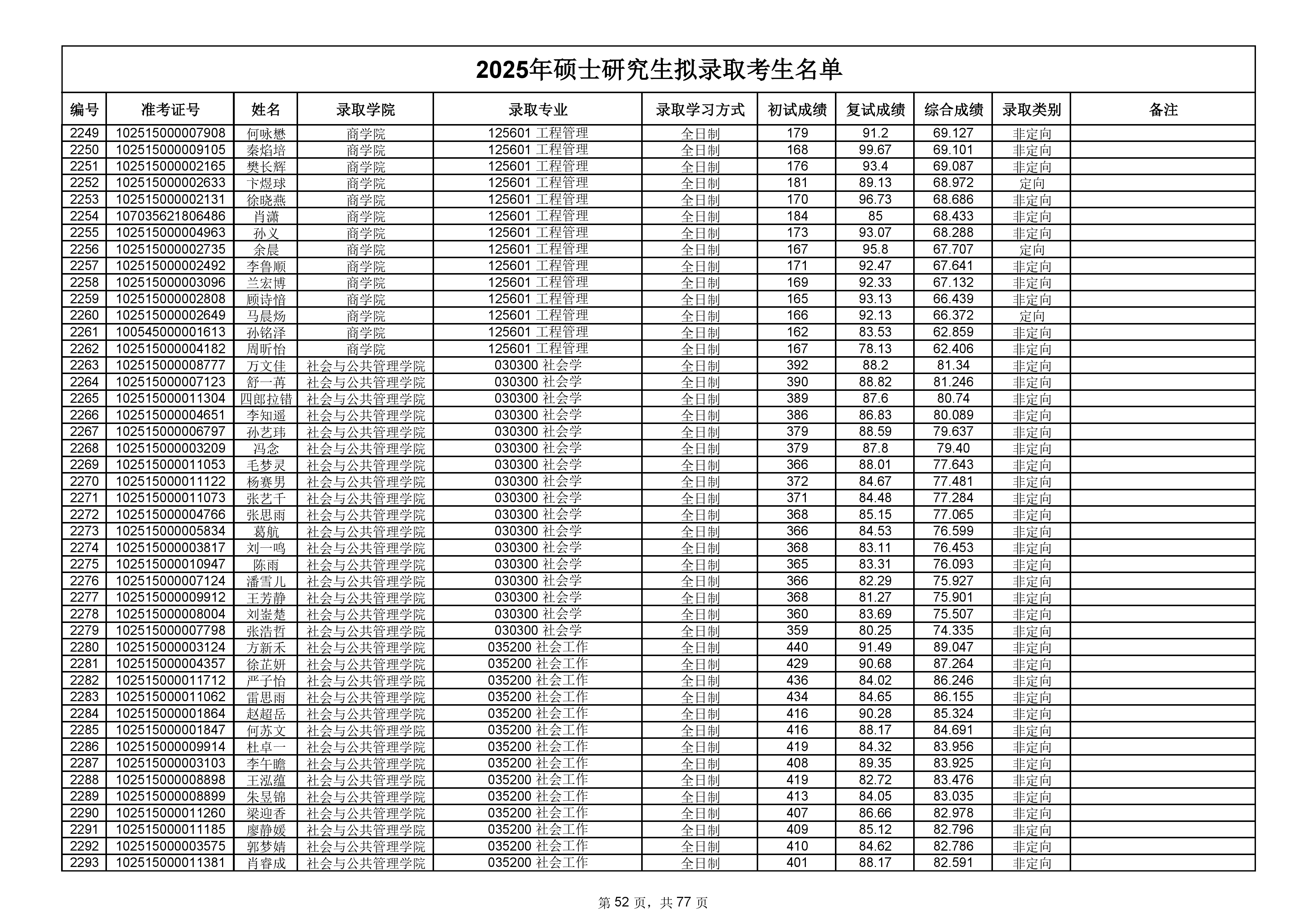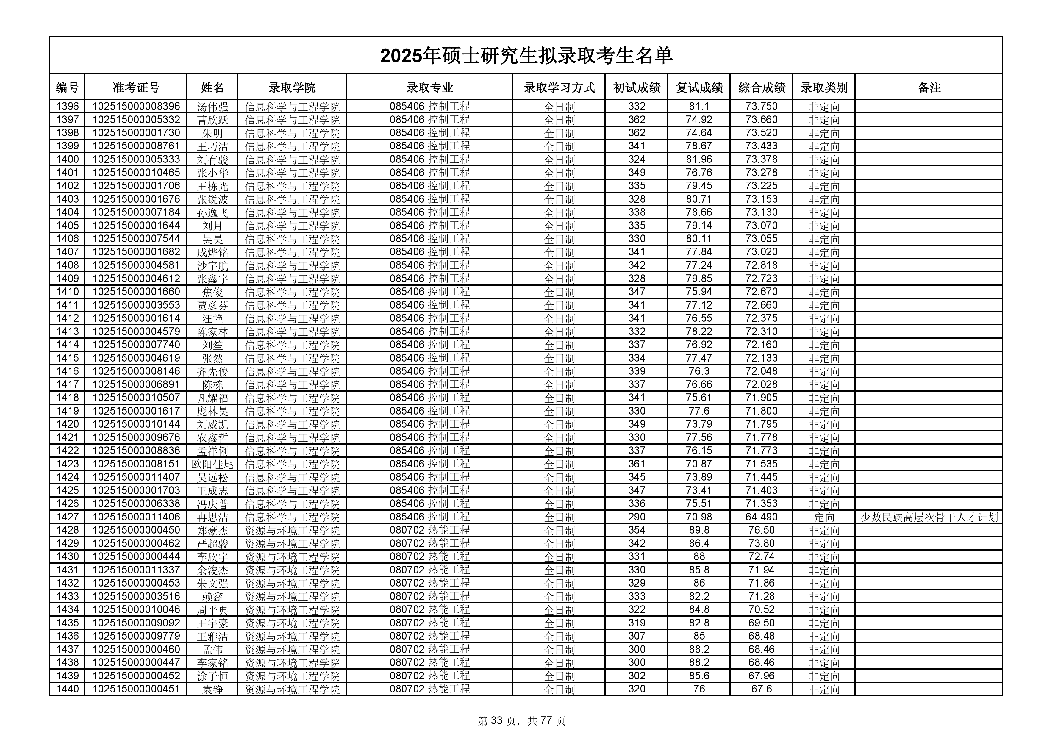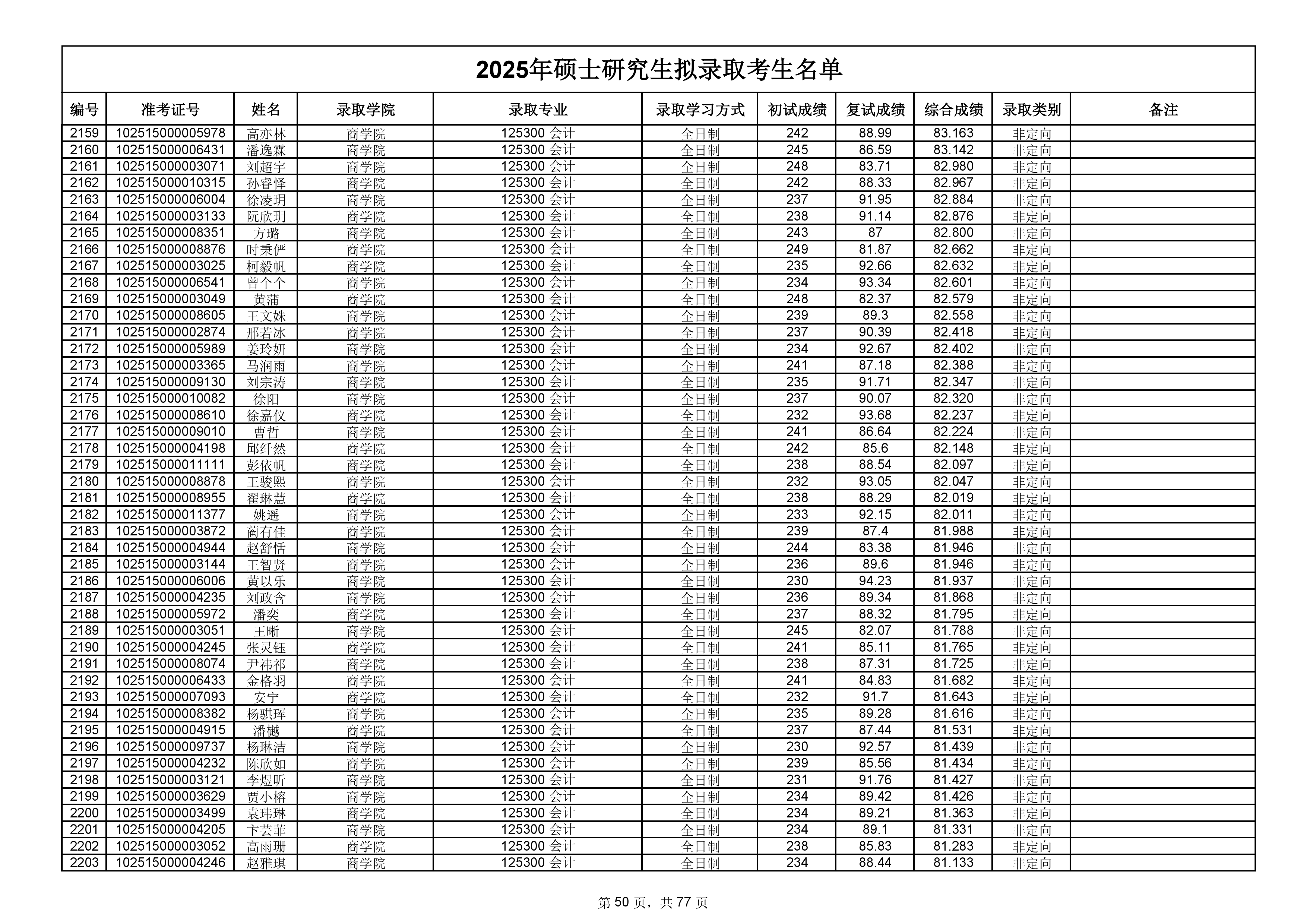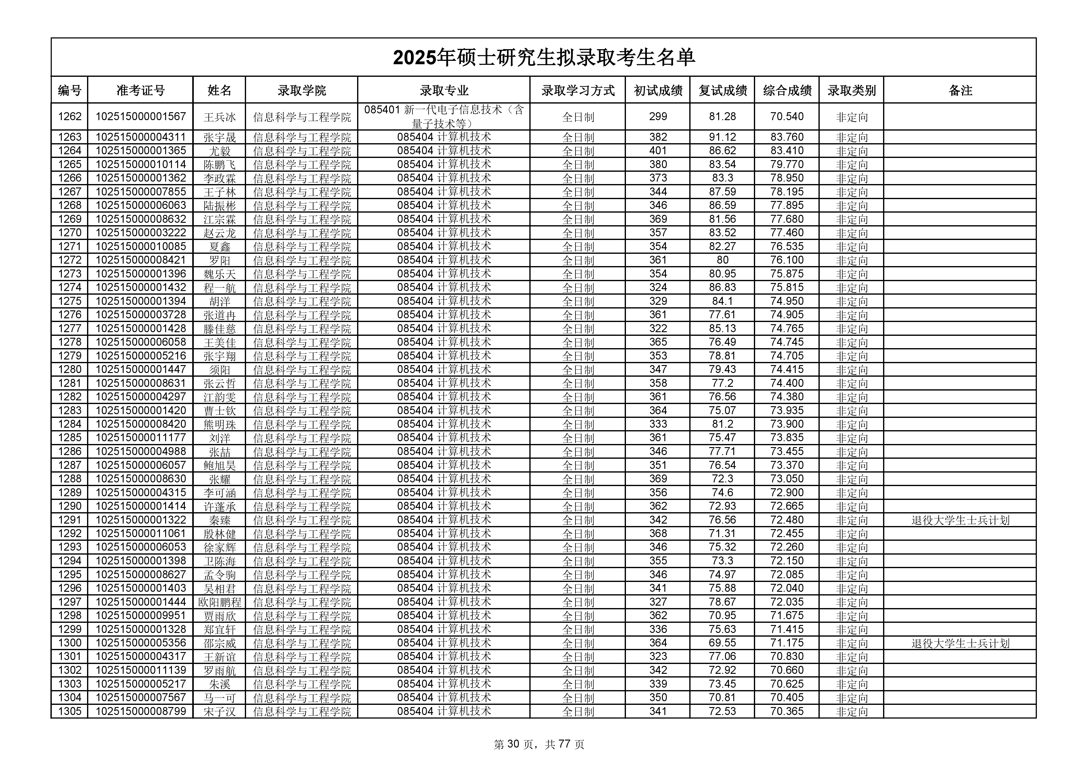 备注:此次公示名单为我校统考一志愿以及调剂拟录取名单。