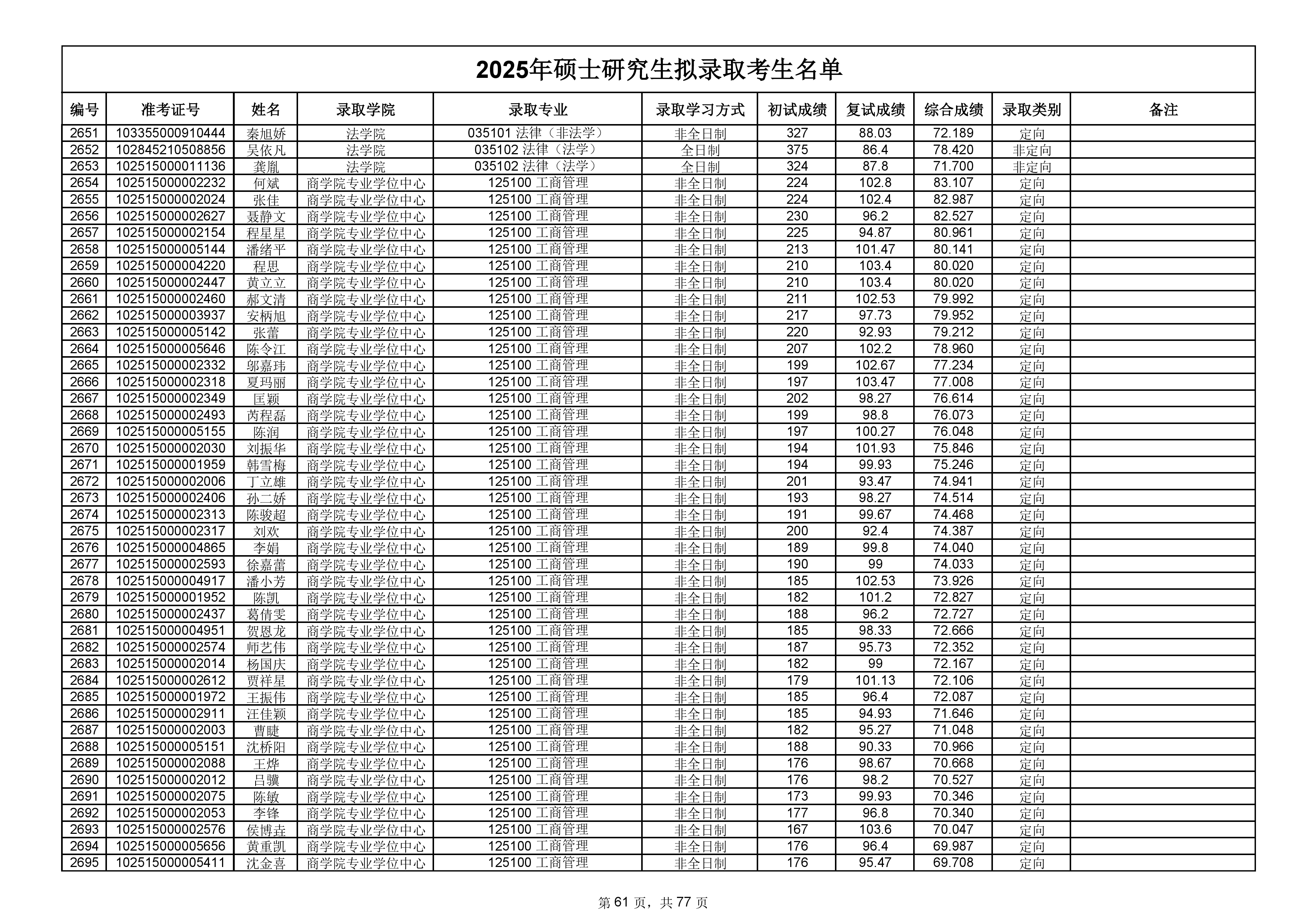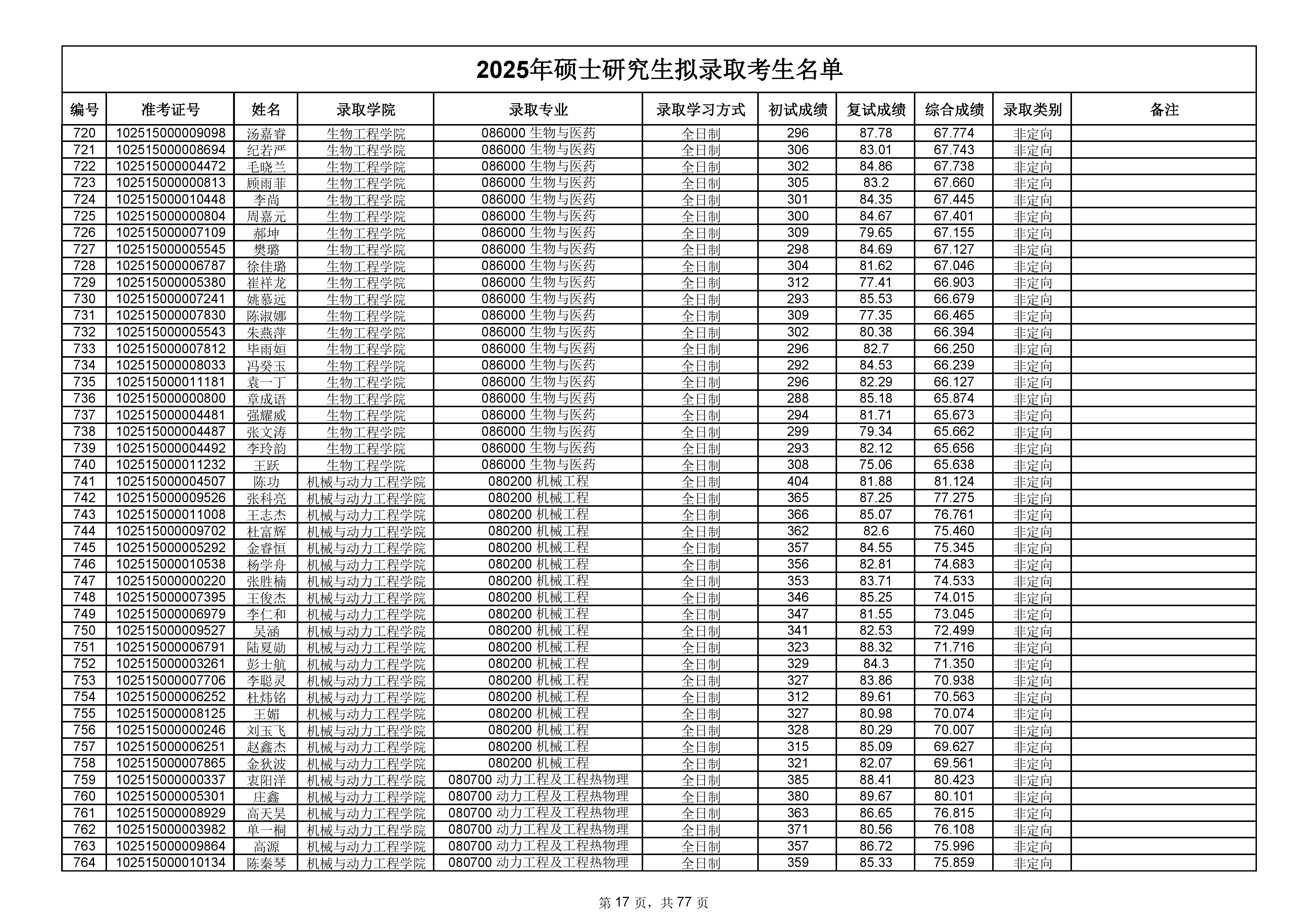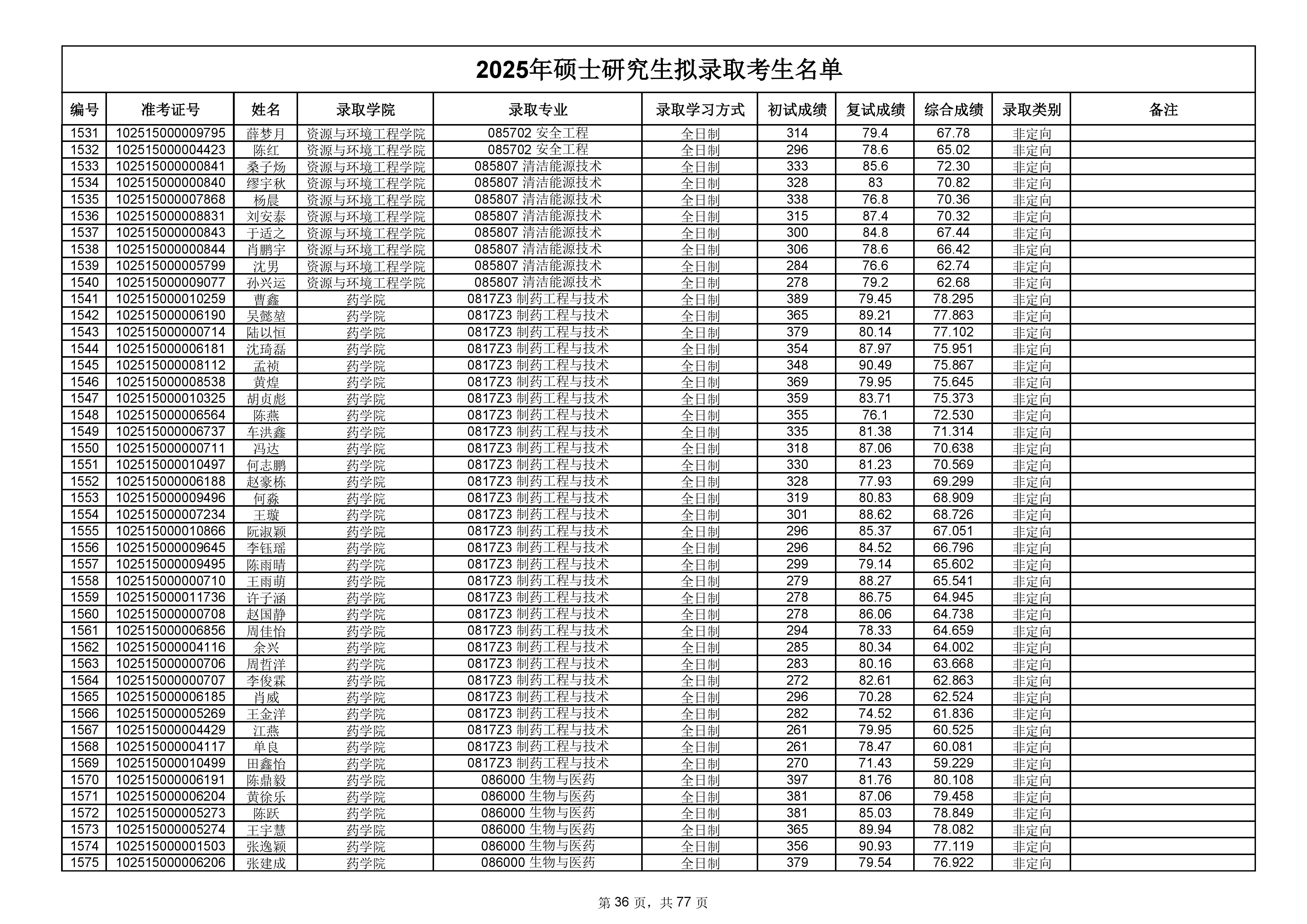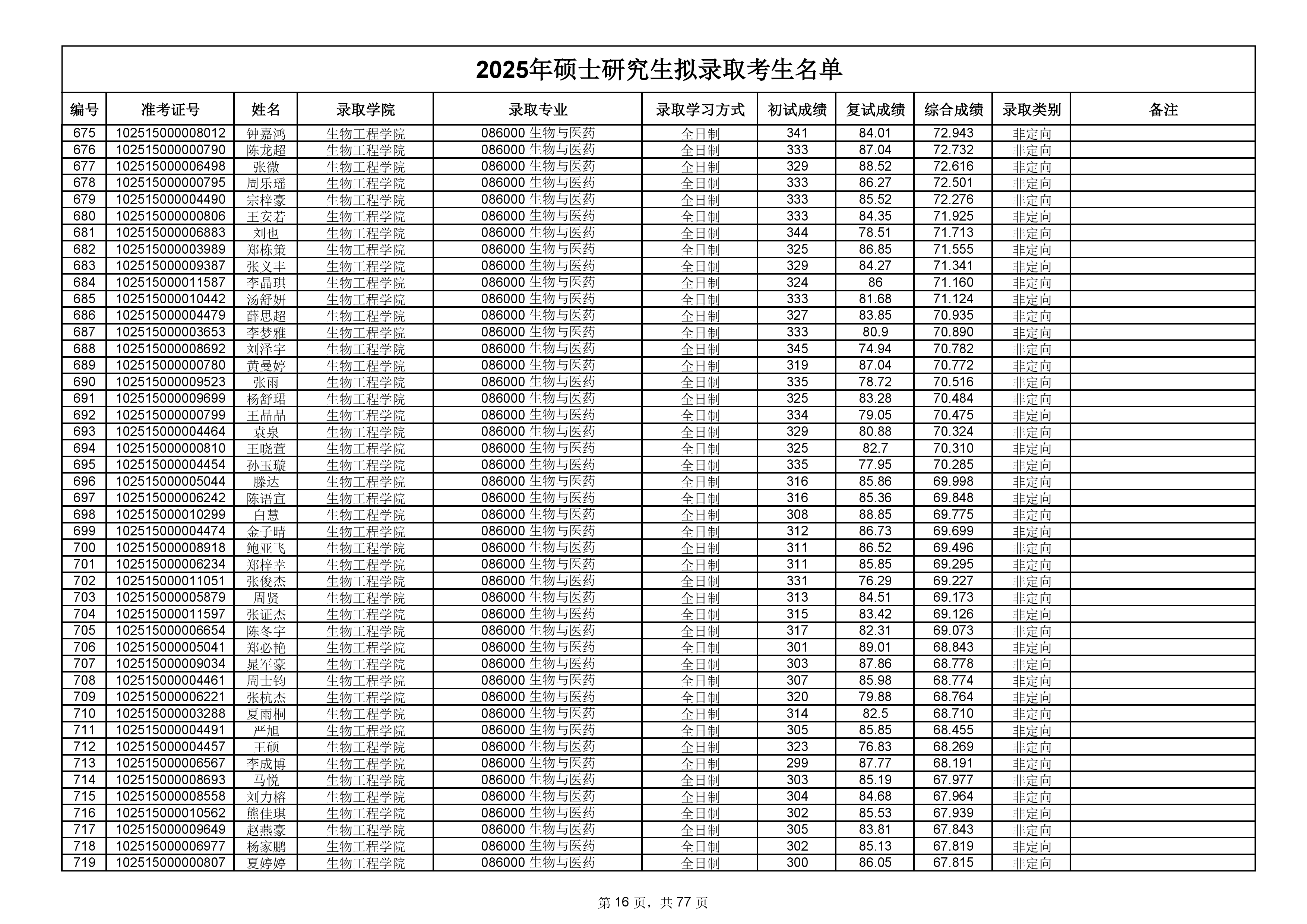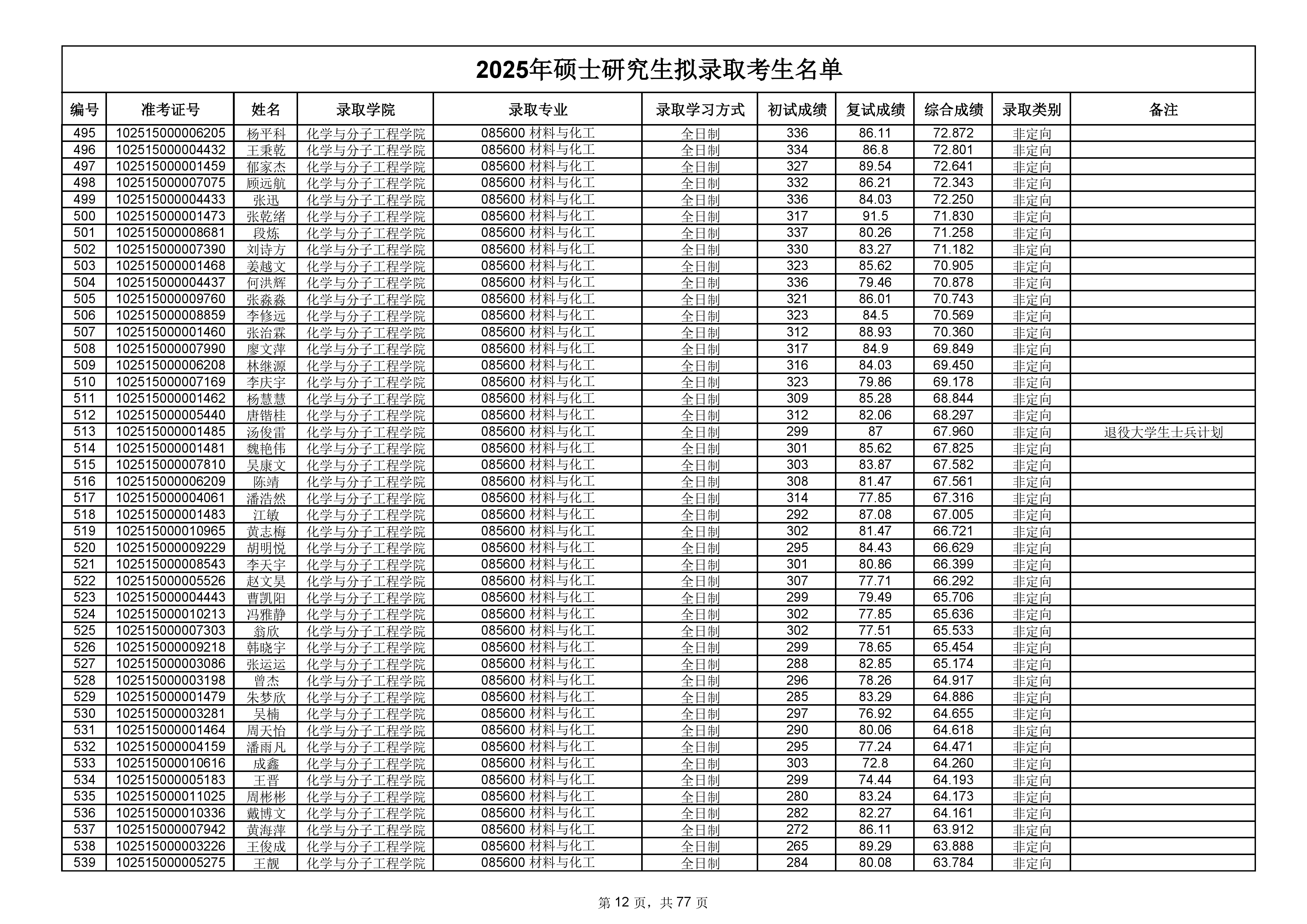 备注:此次公示名单为我校统考一志愿以及调剂拟录取名单。