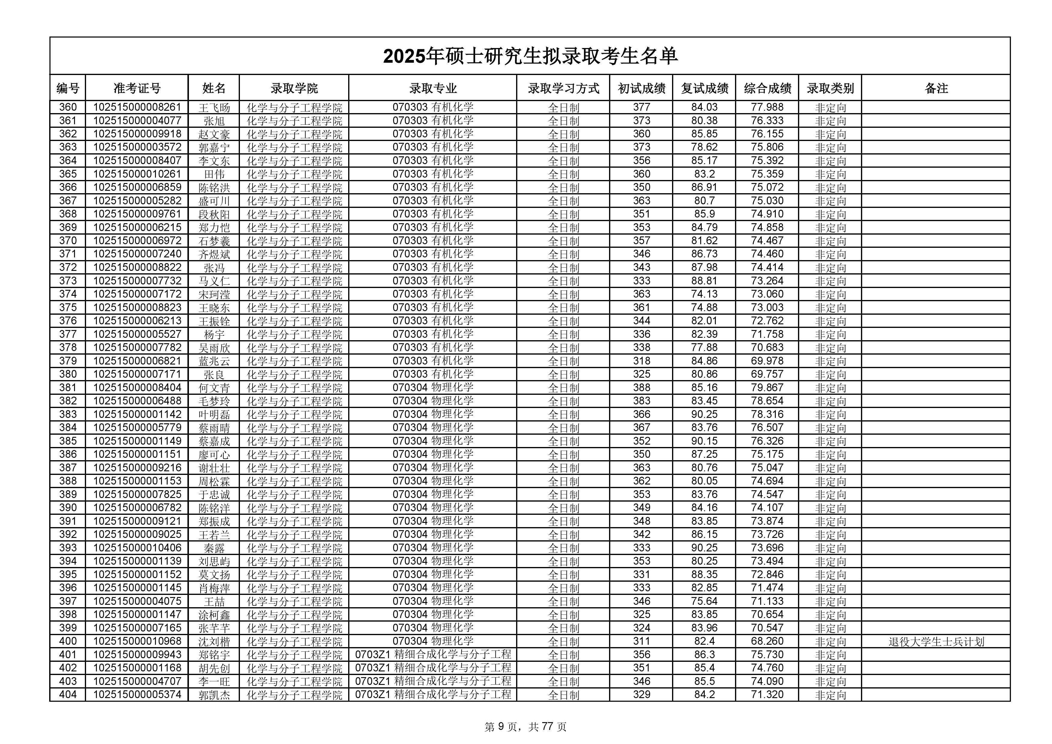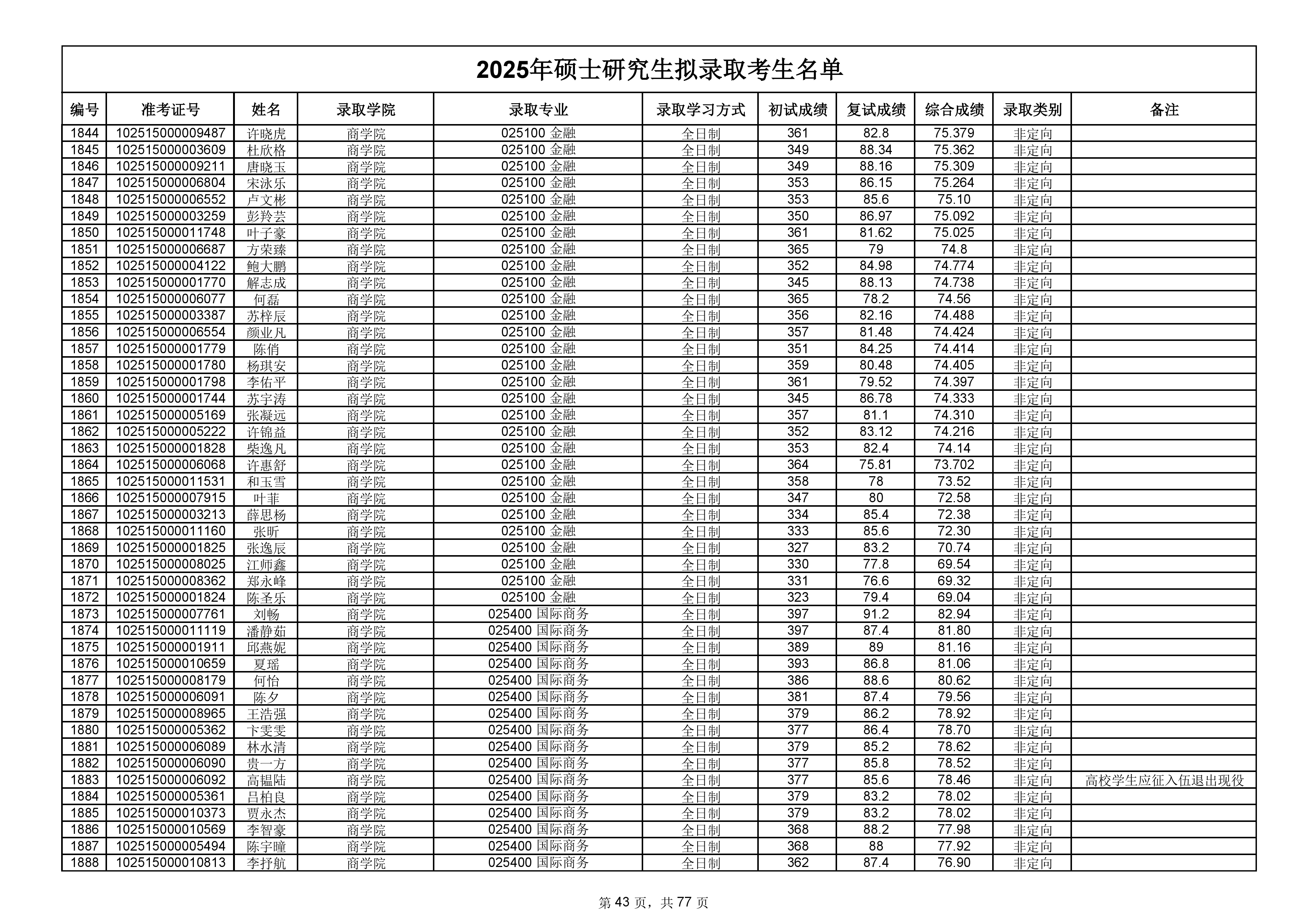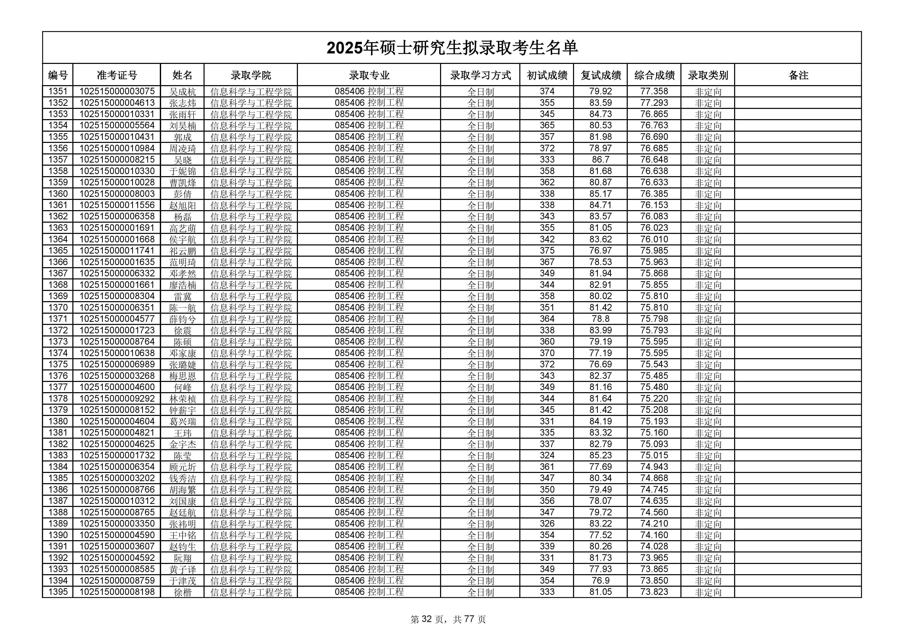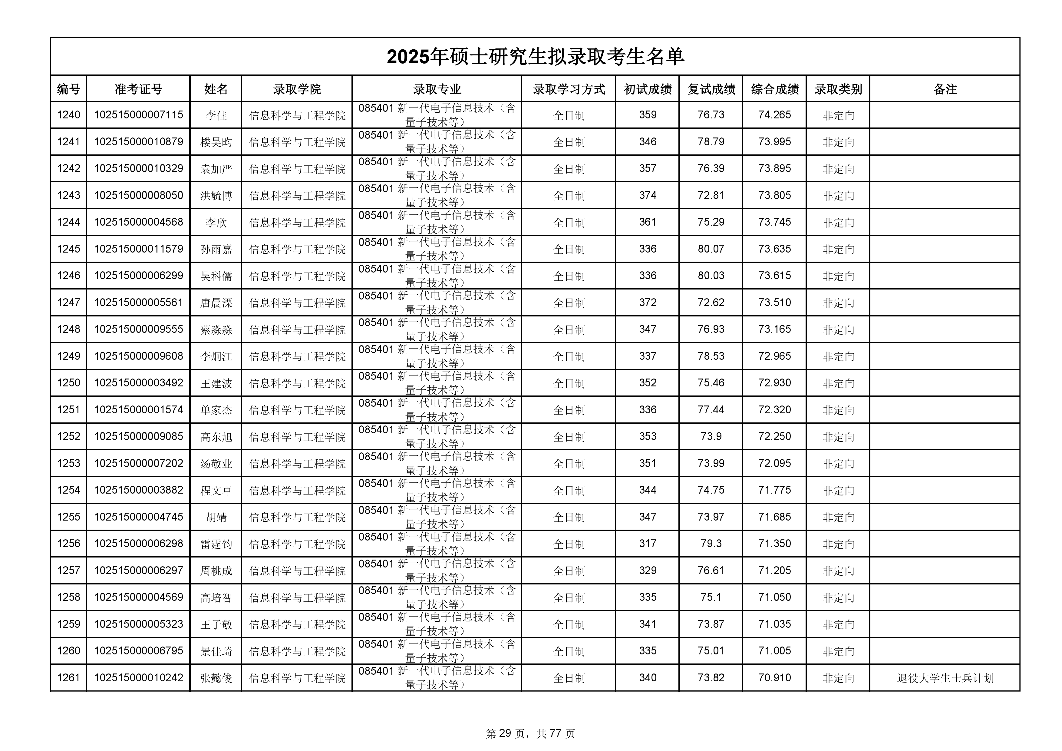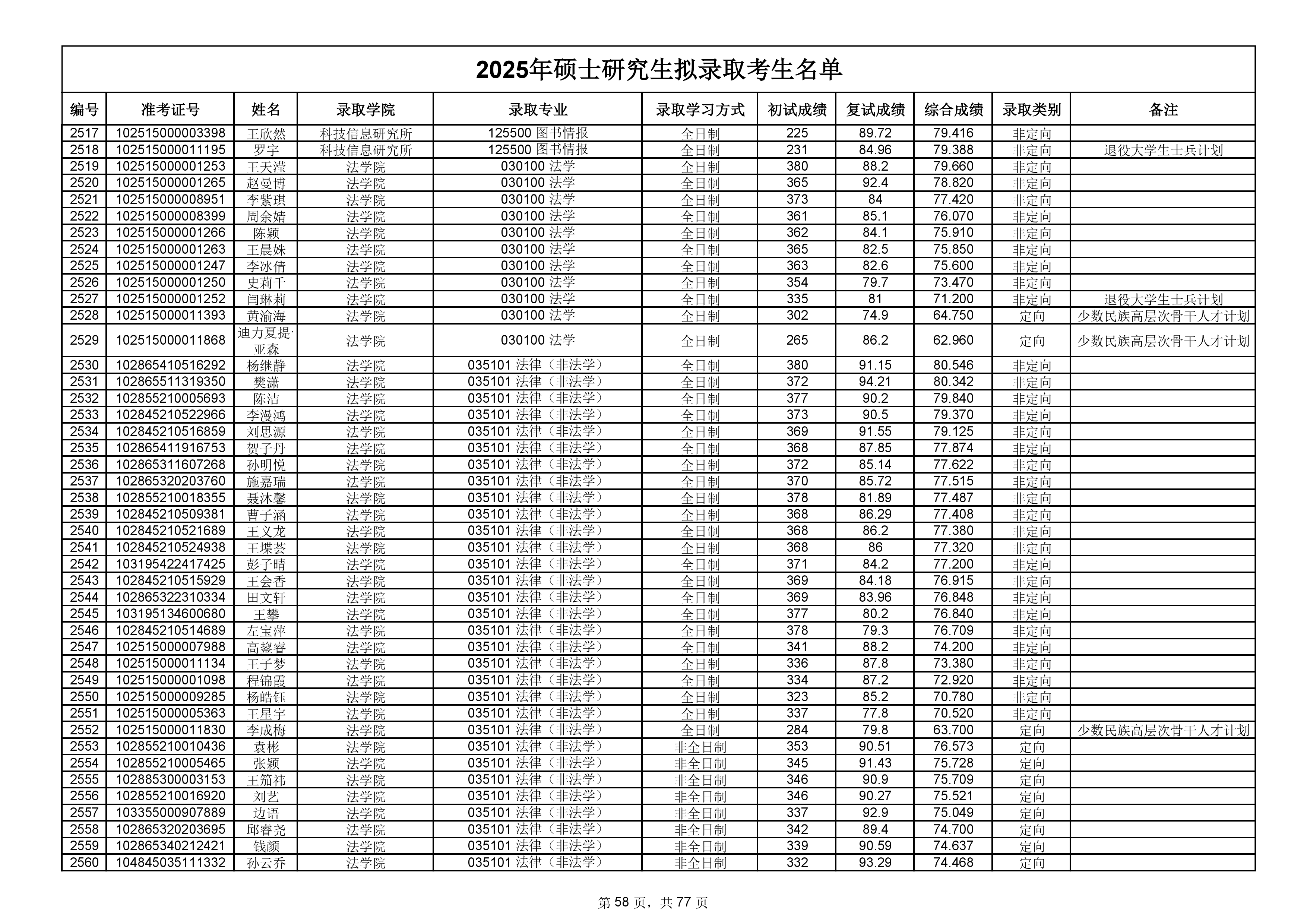 备注:此次公示名单为我校统考一志愿以及调剂拟录取名单。