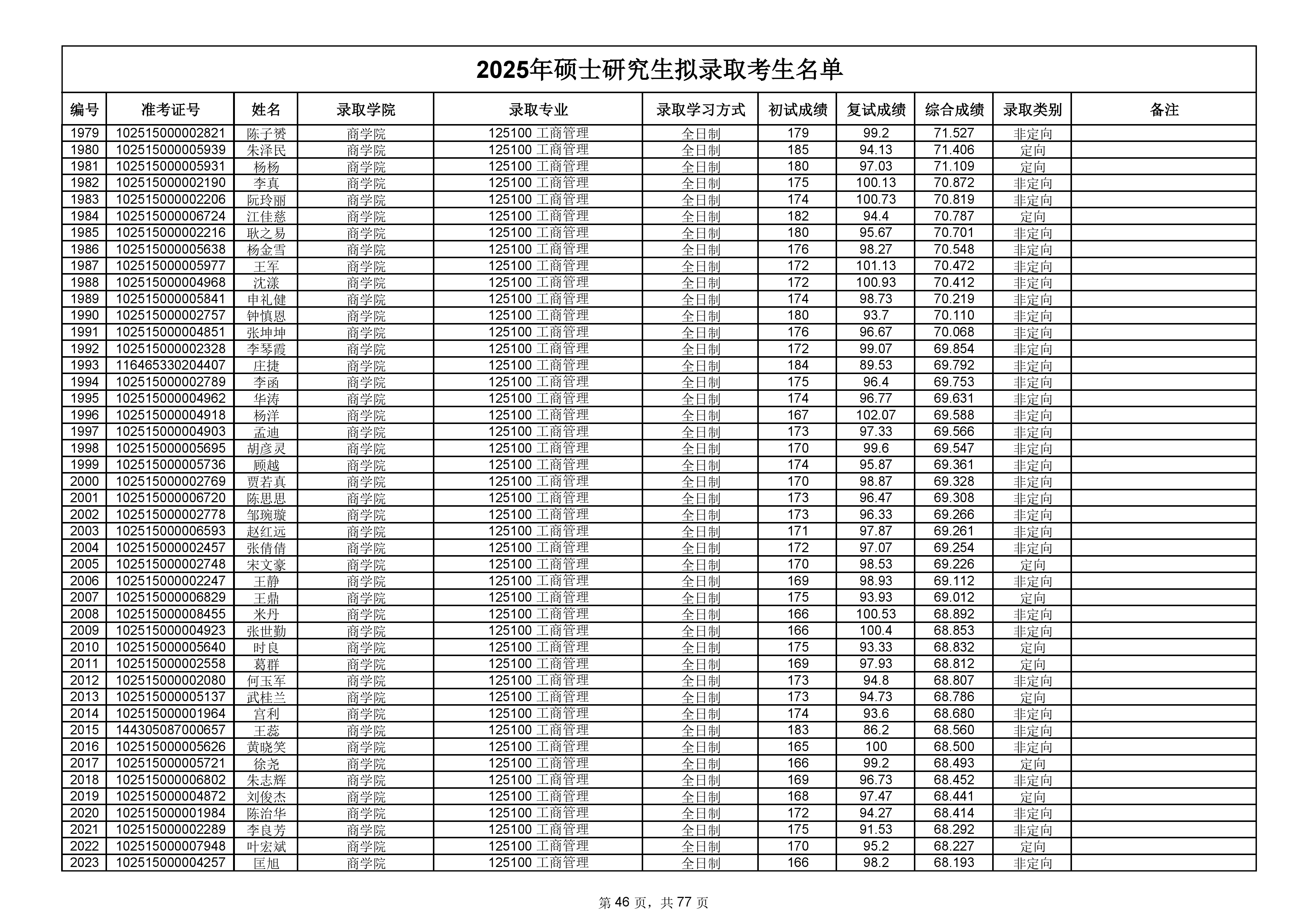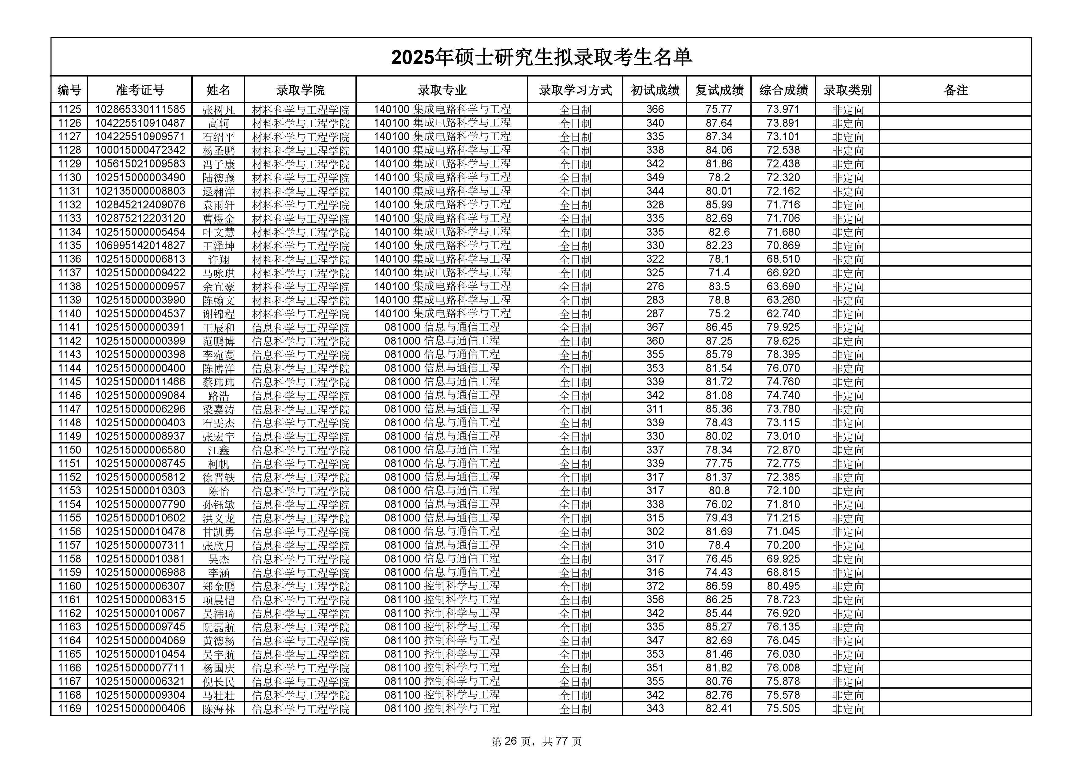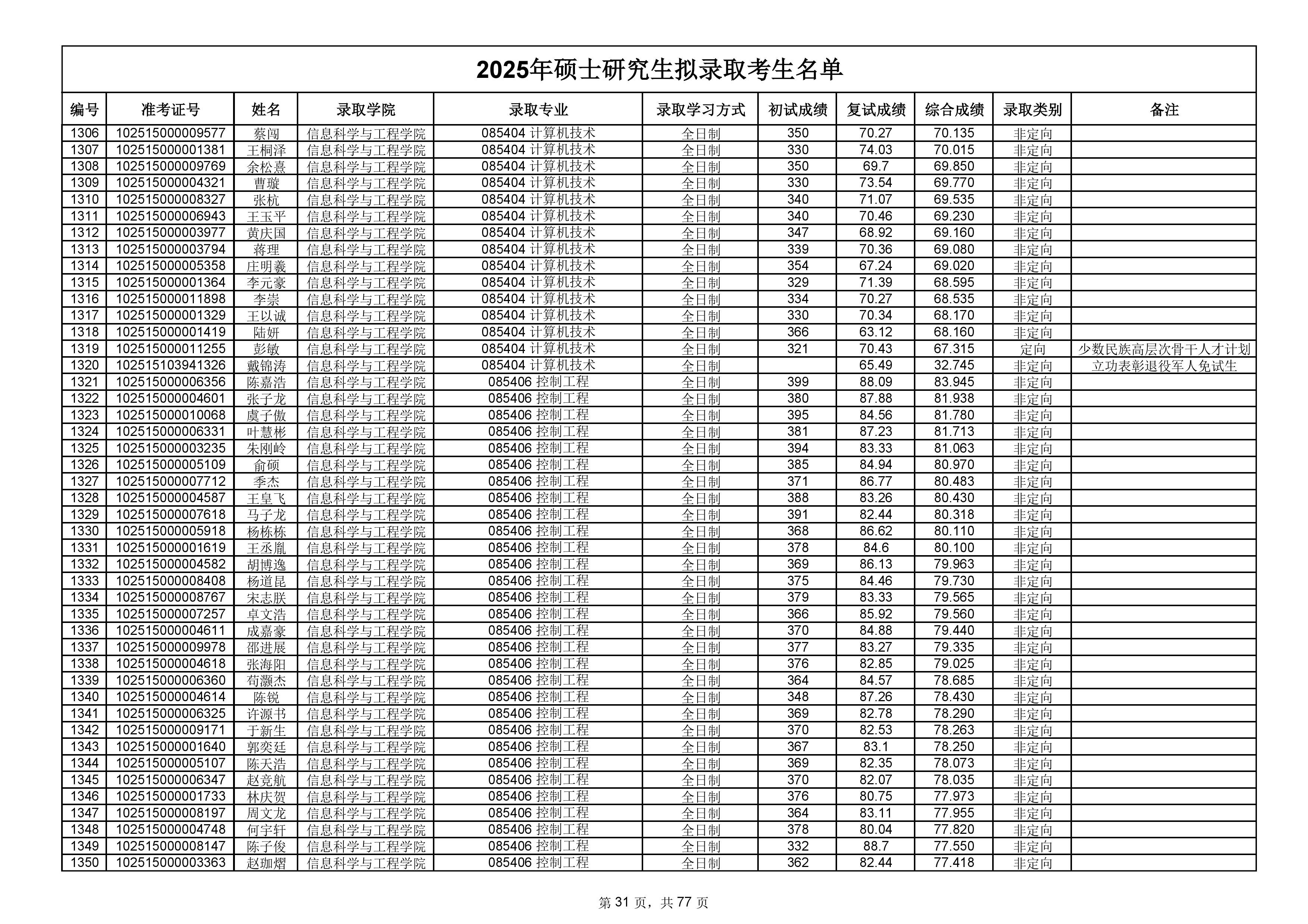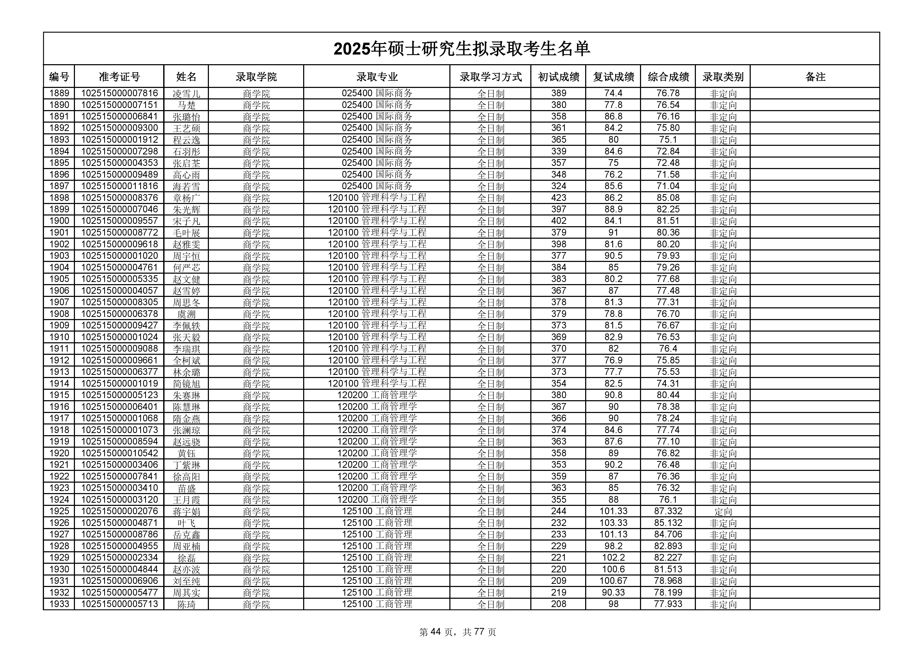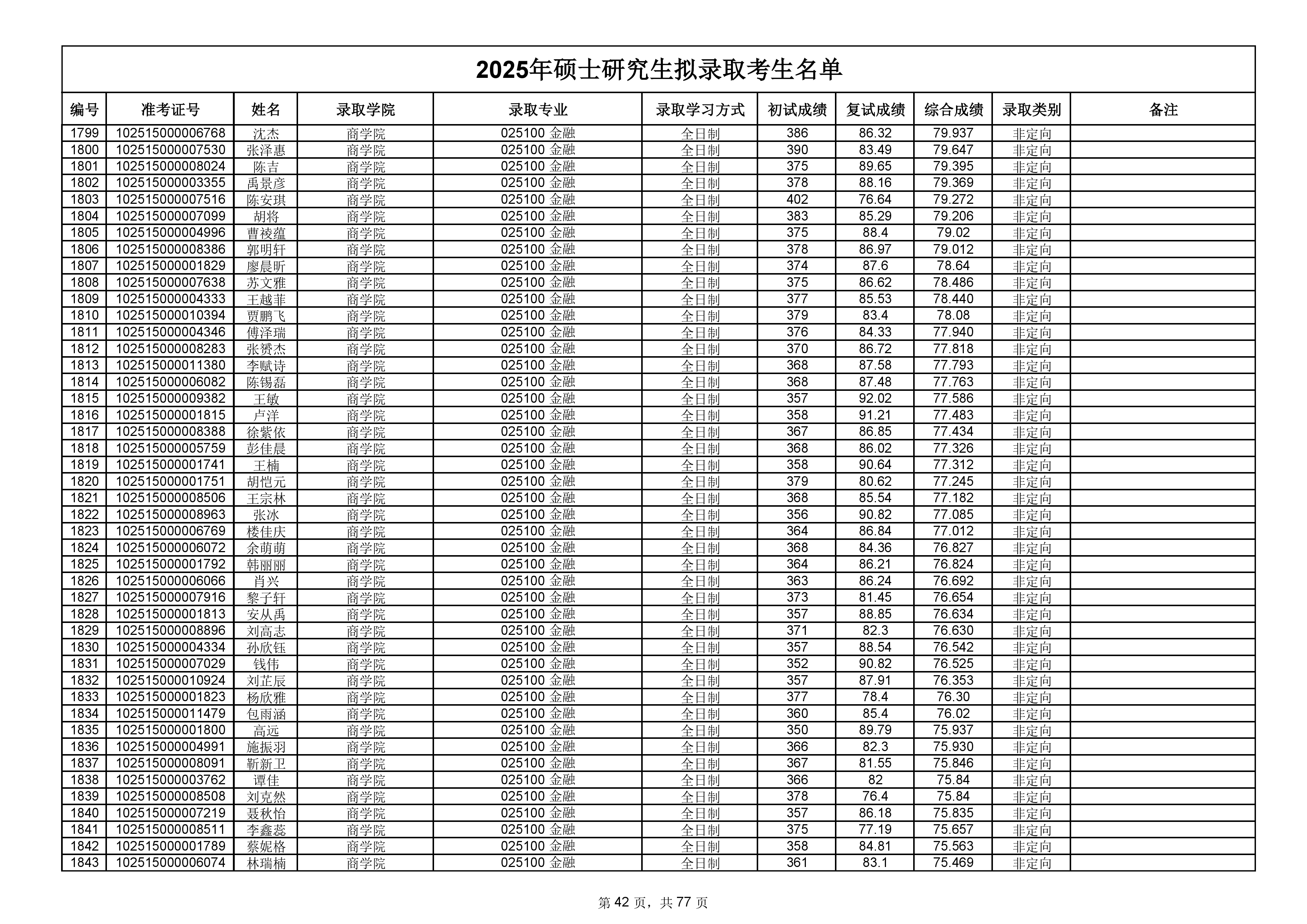 备注:此次公示名单为我校统考一志愿以及调剂拟录取名单。