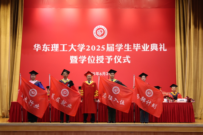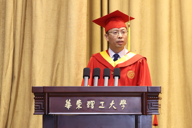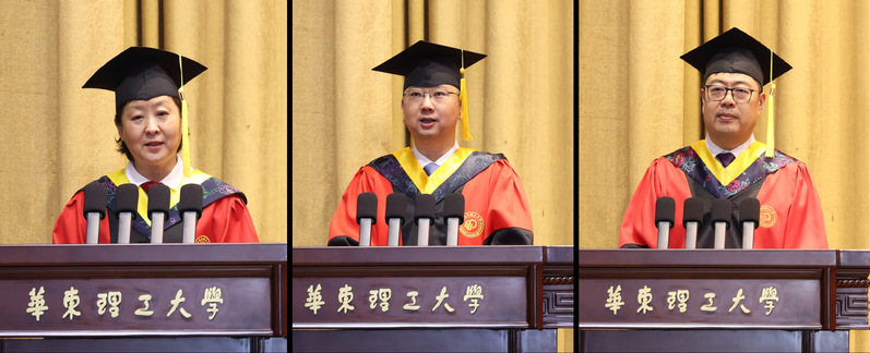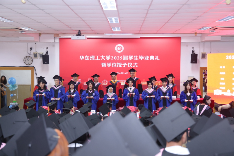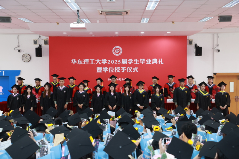 6月24日,betway官方登陆2025届学生毕业典礼暨学位授予仪式在徐汇校区逸夫楼报告厅举行。校党委书记蒋传海,校长、校党委副书记轩福贞,校党委副书记宋来,副校长王慧锋、朱为宏、阎海峰、李春忠、赵黎明等校领导,以及各学院、职能部门负责人,专任教师代表、管理服务人员代表、校友代表、用人单位代表参加典礼。毕业典礼由校党委副书记沈海涛主持。