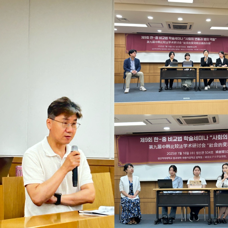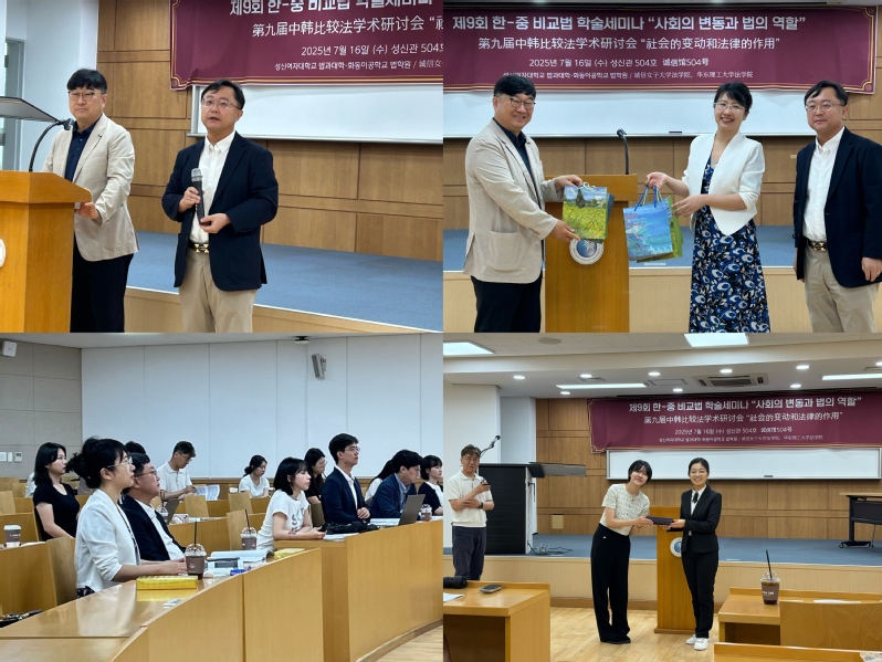 7月16日上午,以“社会的变动和法律的作用”为主题的第九届中韩比较法学术研讨会在韩国诚信女子大学诚信馆拉开帷幕。此次研讨会由betway官方登陆法学院与韩国诚信女子大学法学院联合主办,聚焦数字时代法治领域的前沿挑战。开幕式上,诚信女子大学法学院院长黄泰熙教授致欢迎辞,我校法学院任虎副教授致答谢辞。双方均强调中韩法律交流对青年人才成长的重要意义,为这场跨文化学术对话奠定了坚实基础。随后,双方代表互赠礼物,祝愿两校友谊长青。