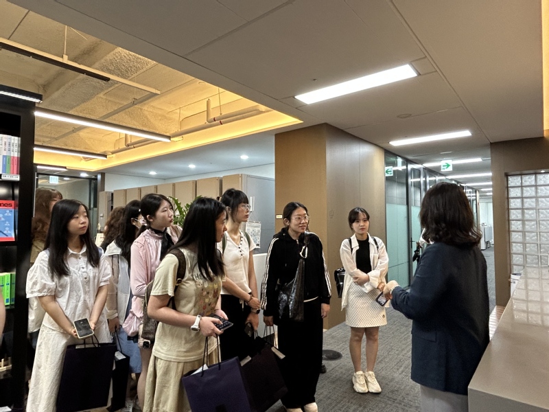 座谈结束后,在金玉琳律师引导下,访学团参观了律所图书馆。高大的书架上,韩国本土法律典籍、判例汇编与国际法律著作、跨境研究资料整齐陈列,其丰富性与覆盖面令人印象深刻。此次交流让法学院学子从实务视角触摸到韩国法律行业的特质,深刻体会到支撑顶尖律所专业水准的内在素养:既需敏锐的思辨能力,亦需深厚的知识积淀,更需在现实博弈中把握法律弹性的实践智慧。这些洞见既为涉外法治人才培养提供了宝贵参照,也激励学子以扎实的知识储备筑牢专业根基。