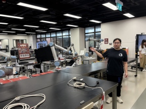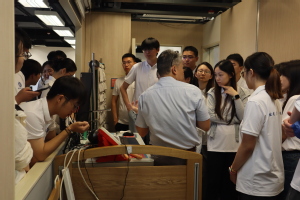 代表团听取了港大工程学院重点实验室介绍讲座,近距离感受智能科技的创新魅力。Prof. James Lam团队的Control System Group展示了先进的控制系统研发成果,从算法模型到实际应用场景模拟,让师生了解到控制系统在智能装备、工业自动化等领域的核心作用;港大MARS LAB聚焦自主激光雷达无人机技术,陈楠博士通过PPT视频演示了无人机在复杂环境下的自主导航与探测功能,展现了港大在无人系统领域的前沿探索;Adaptive Robotic Controls Lab的陈佩宇博士以《Event-based Autonomous Systems》为题,讲解了基于事件驱动的自主系统核心原理、技术难点及应用场景。随后,代表团探访了港大工程学院科研基地,通过成果展示墙了解学院与各界合作交流、技术突破的历程;在机器人竞赛实验室,港大学生分享了参与科创竞赛的故事,展现了学院以赛促学、鼓励实践创新的育人氛围。