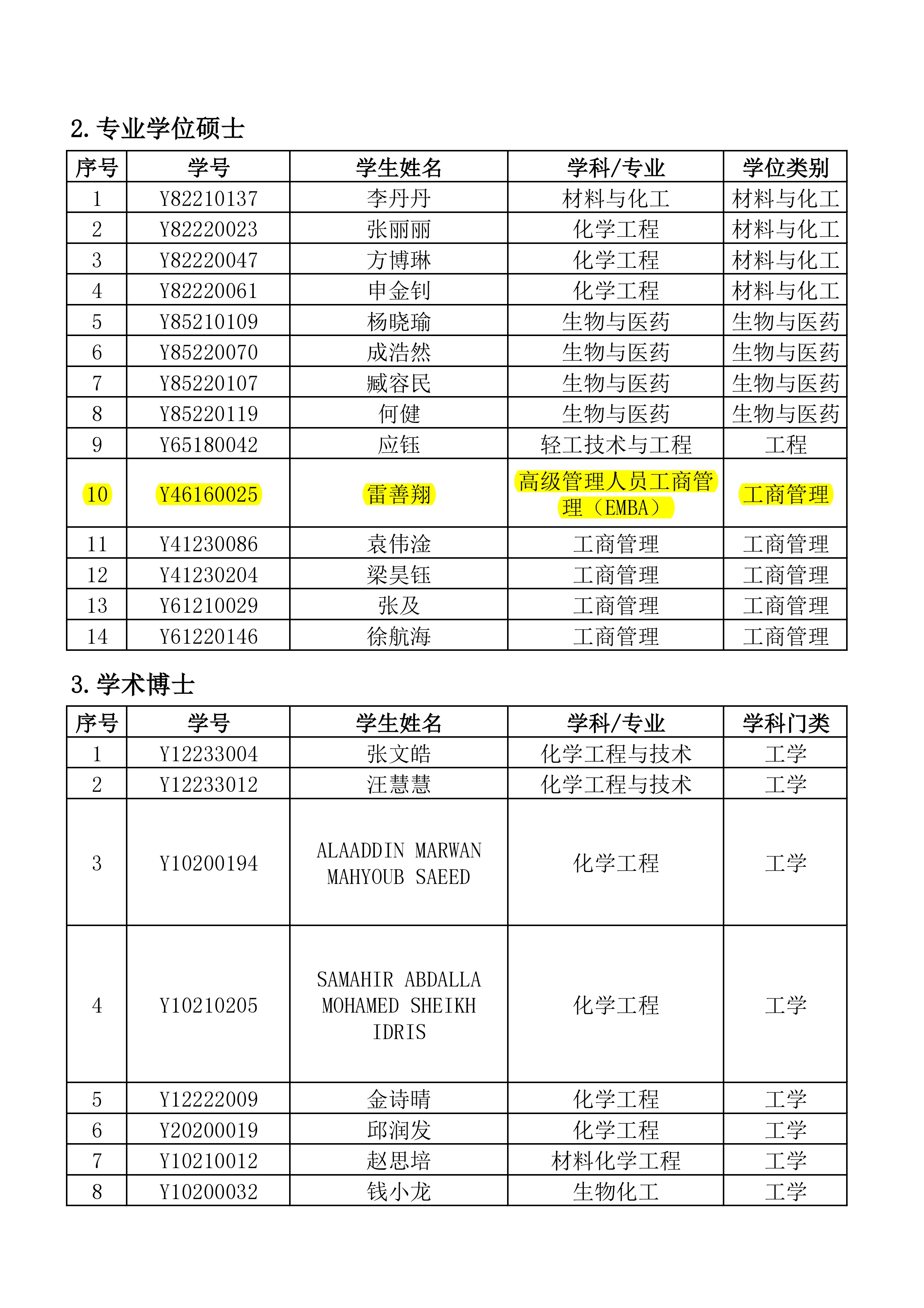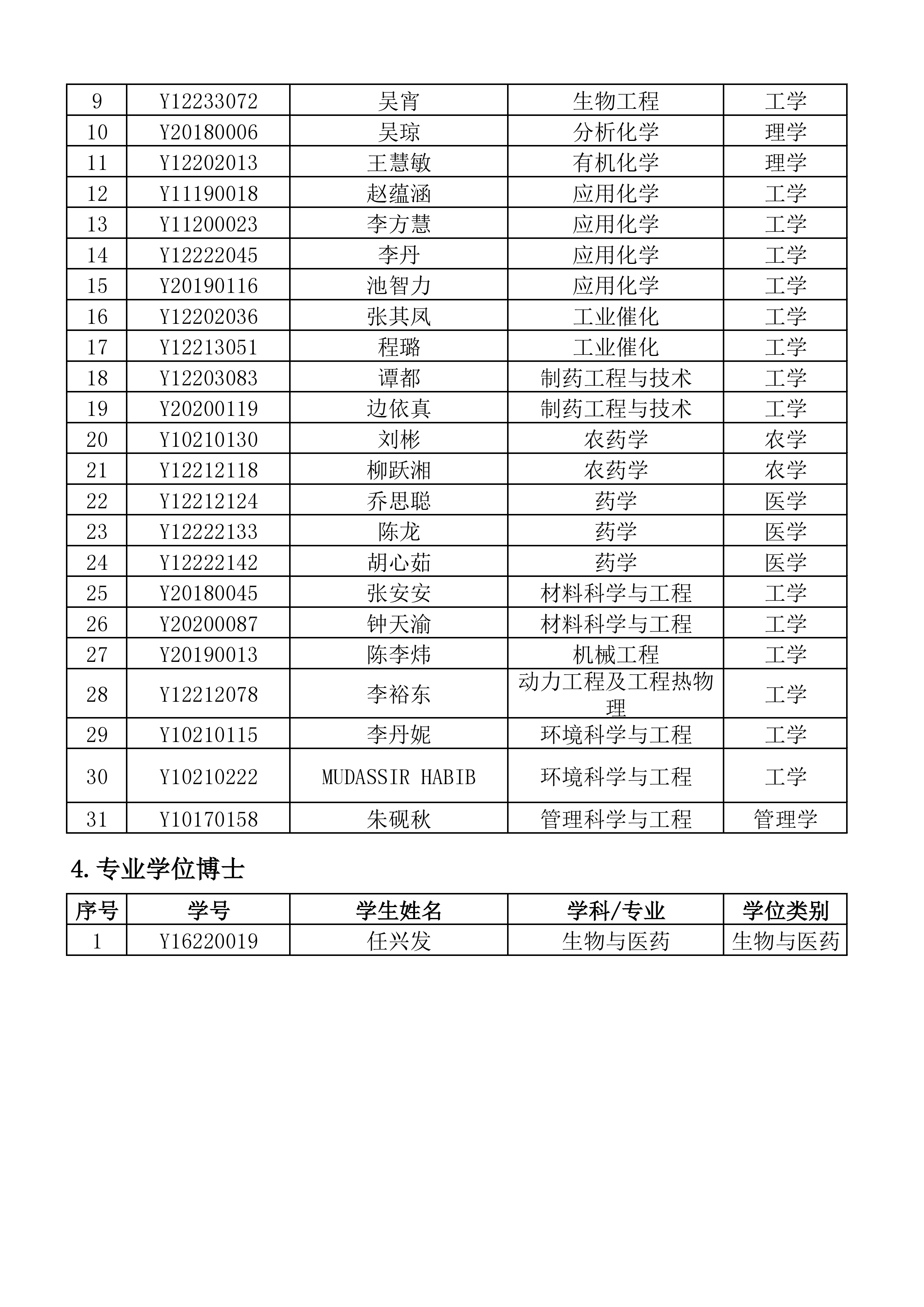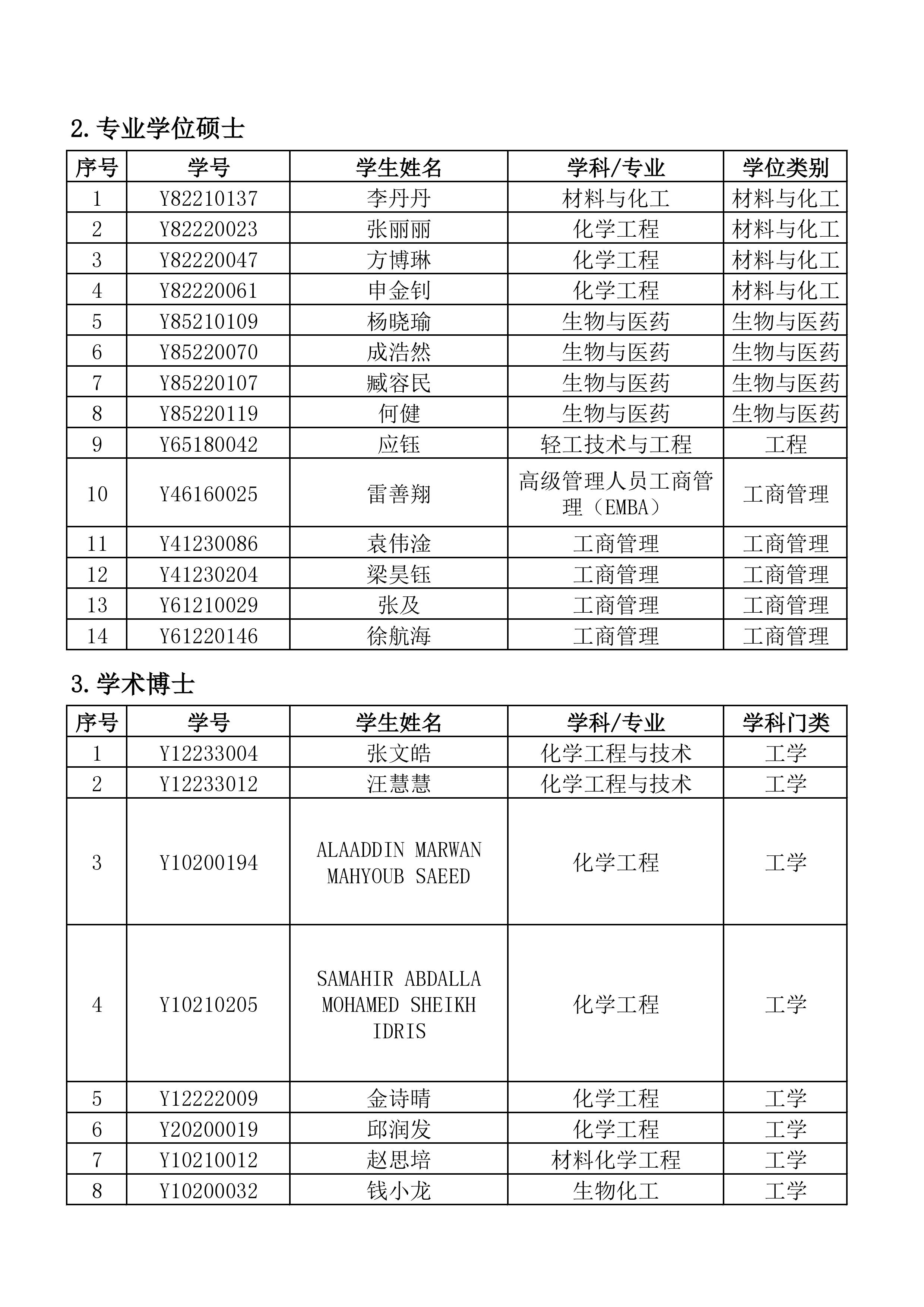 学位评定委员会公告