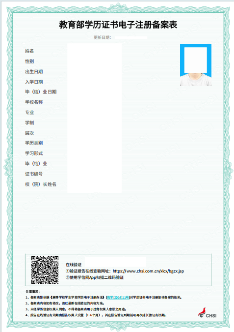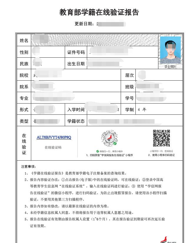 《教育部学籍在线验证报告》